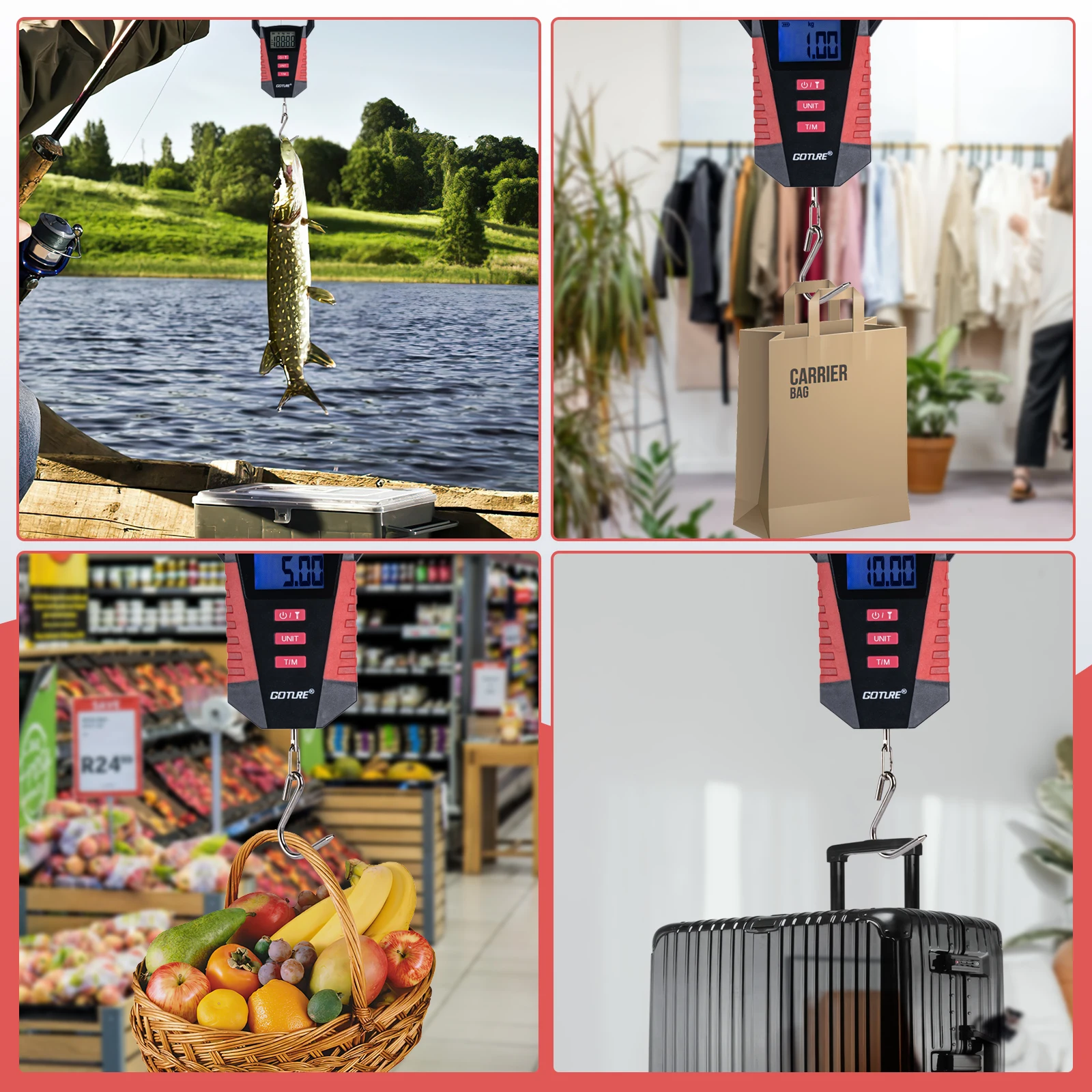 Báscula de pesca impermeable portátil Goture, báscula Digital de cocina LCD de máximo 50kg, Maleta de viaje para exteriores, báscula colgante, herramientas de prueba