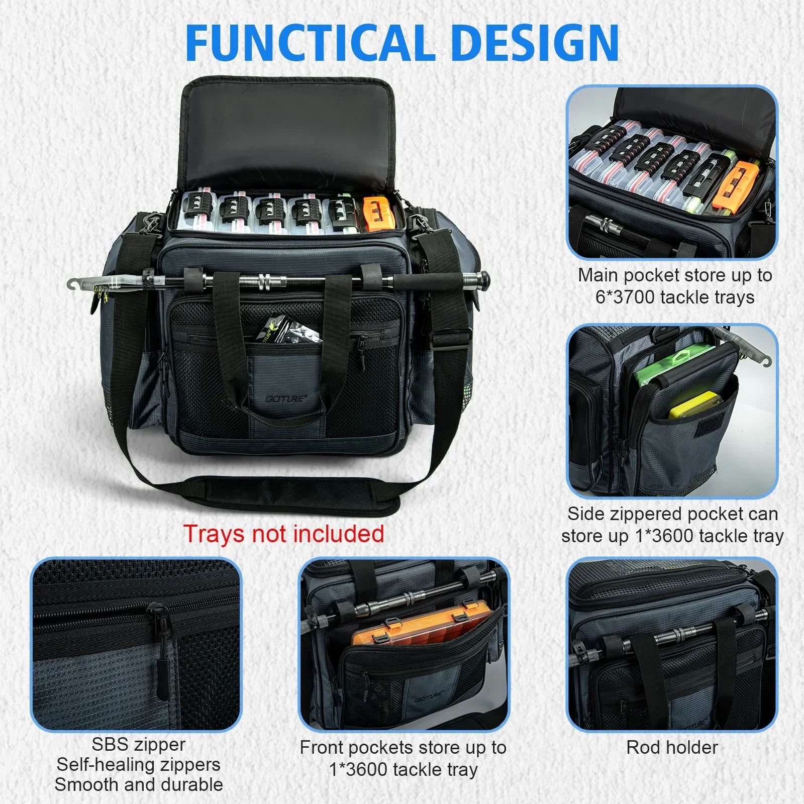 Goture-bolsa multifuncional impermeable para aparejos de pesca al aire libre, tela Oxford 600D, bolsa de almacenamiento de 48x31x35cm, bolsas portacanna de pescar