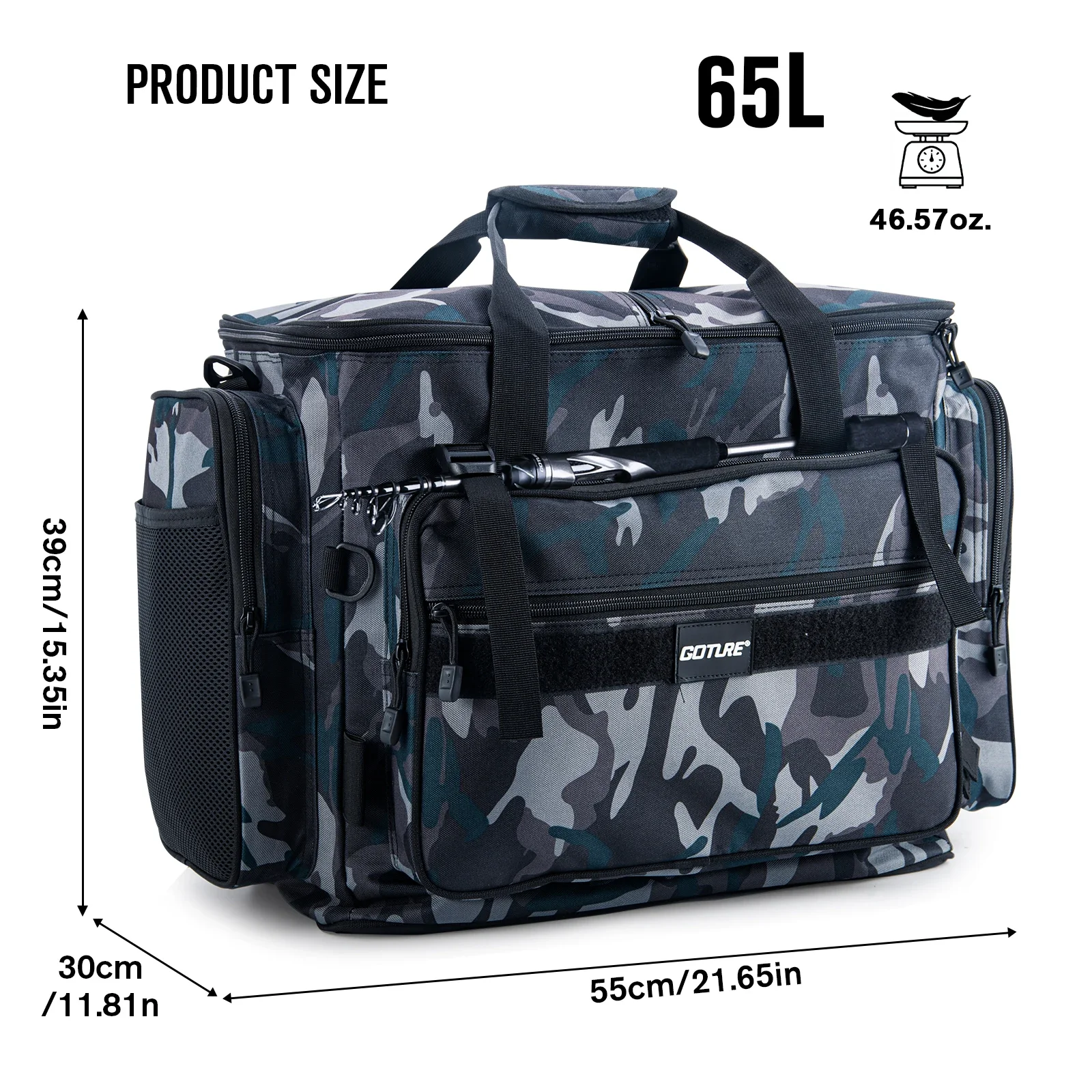 Goture-Bolsa de pesca grande impermeable con 3 cajas de aparejos de 3700, 30L, 65L, bolso de pesca al aire libre, tienda, bolso de hombro para equipo de pesca