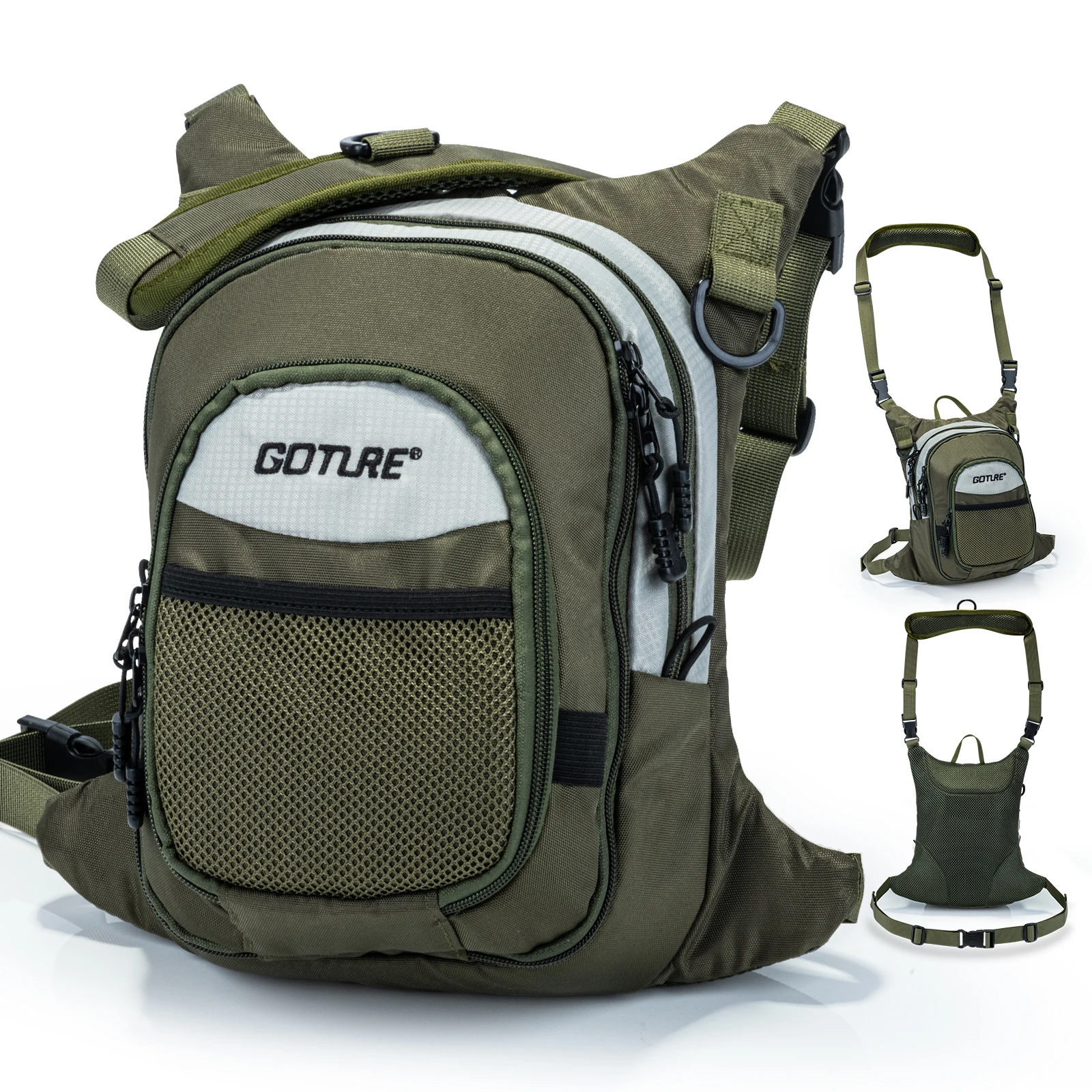 Goture 100% poliéster bolsa de pesca con mosca cofre de pesca ultraligero múltiples bolsillos herramienta de pesca accesorio bolsa al aire libre Sling bolsas
