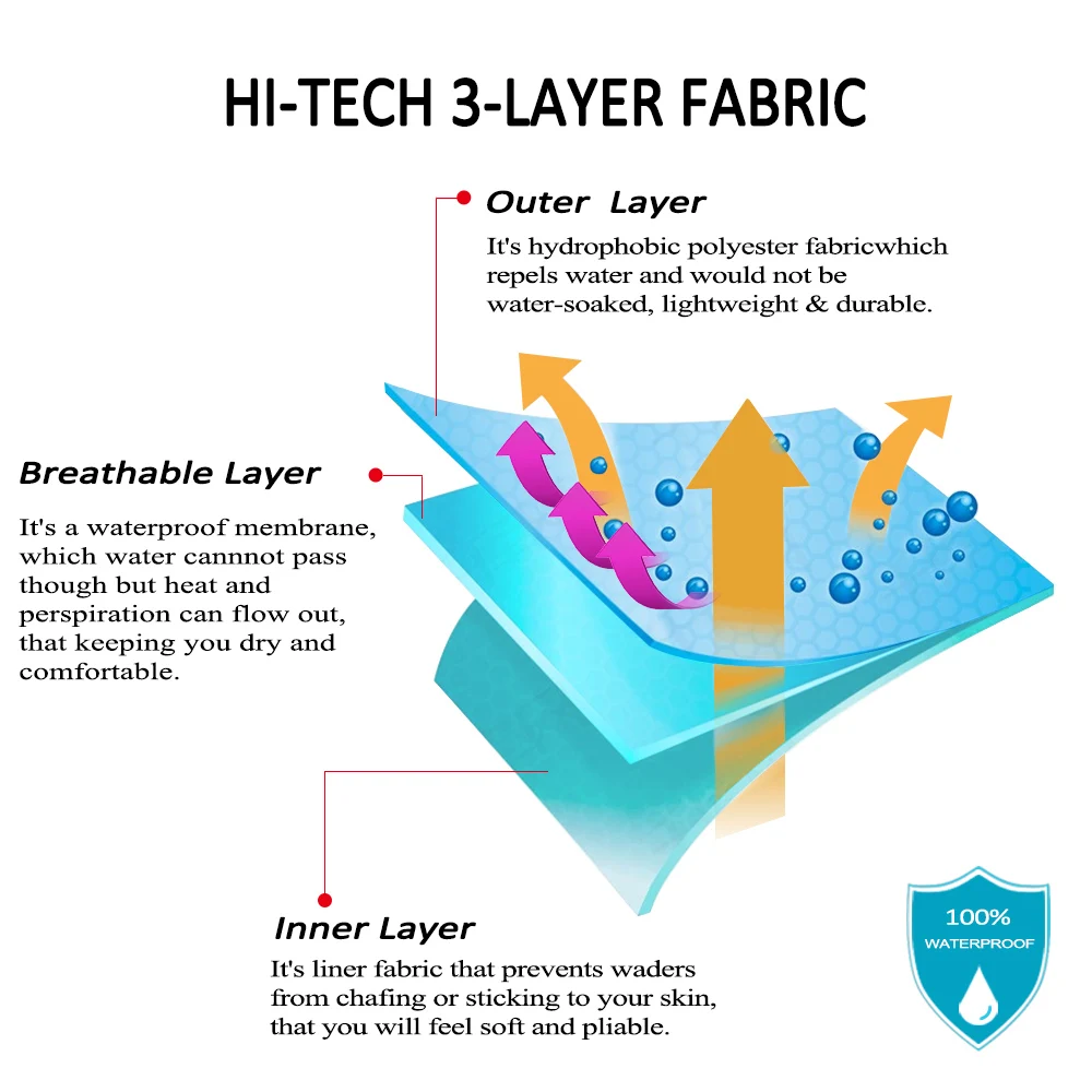 Goture-Botas de pesca de 3 capas de poliéster, S, M, L, XL, XXL, transpirables, 100% impermeables, para el pecho