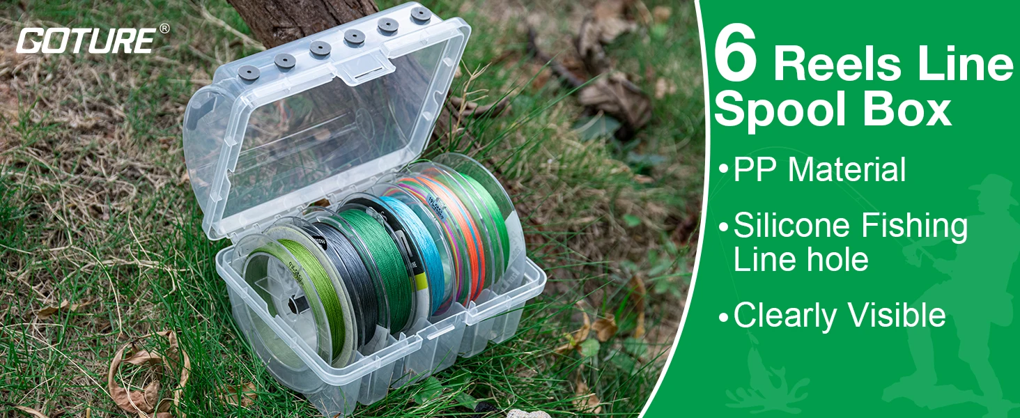 Goture-caja de almacenamiento para sedal de pesca, organizador de sedal con ranuras, visibilidad clara, 6 compartimentos, 1 piezas