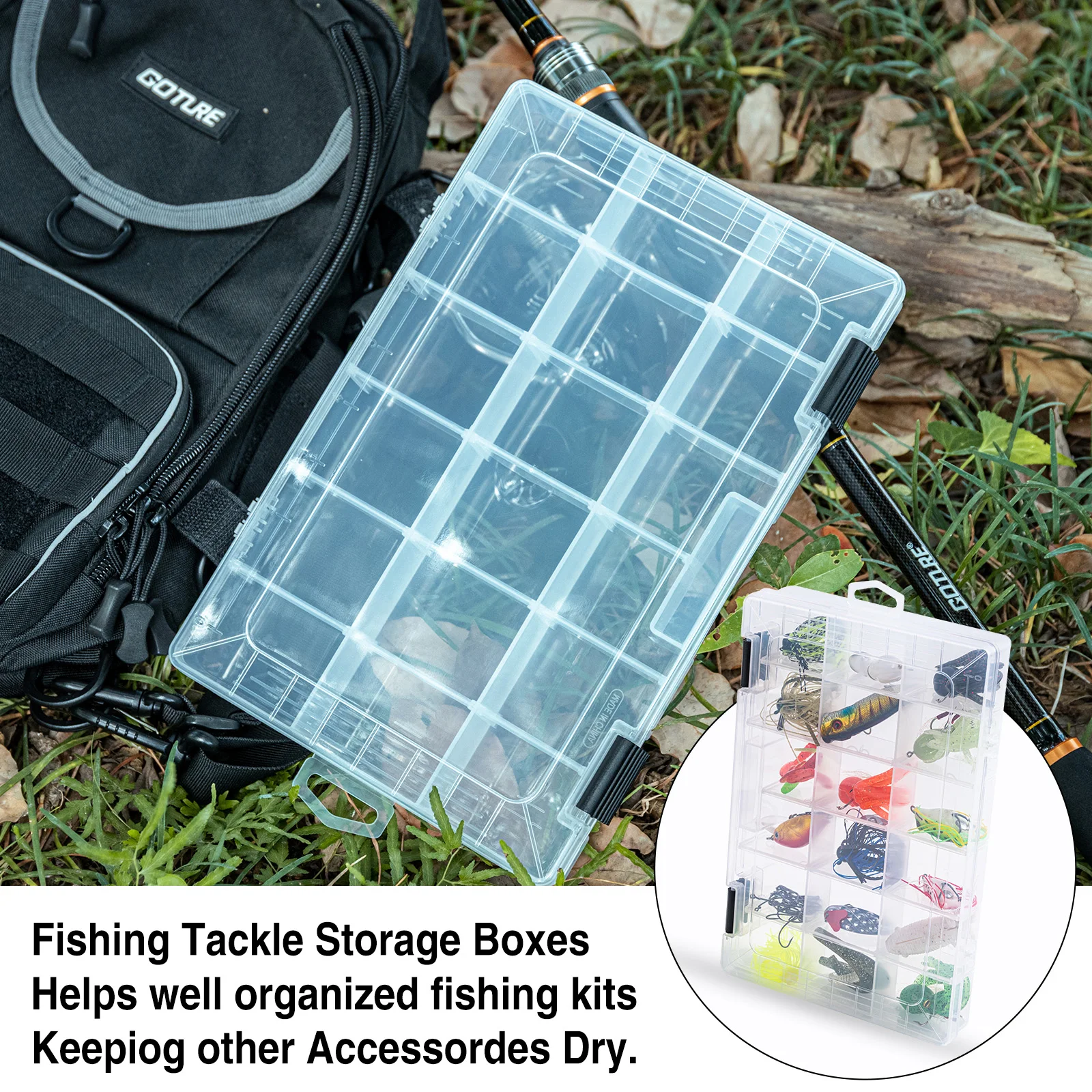 Goture-caja de aparejos de pesca portátil, estuche de almacenamiento de 18-24 compartimentos, accesorios de pesca de carpa, anzuelo de señuelo, caja de herramientas de cebo suave