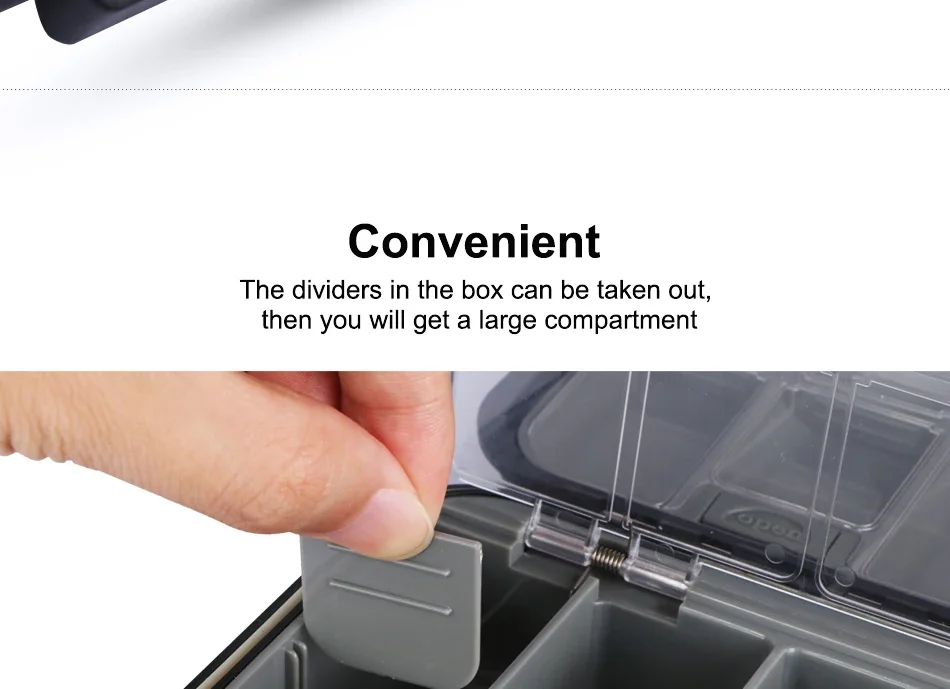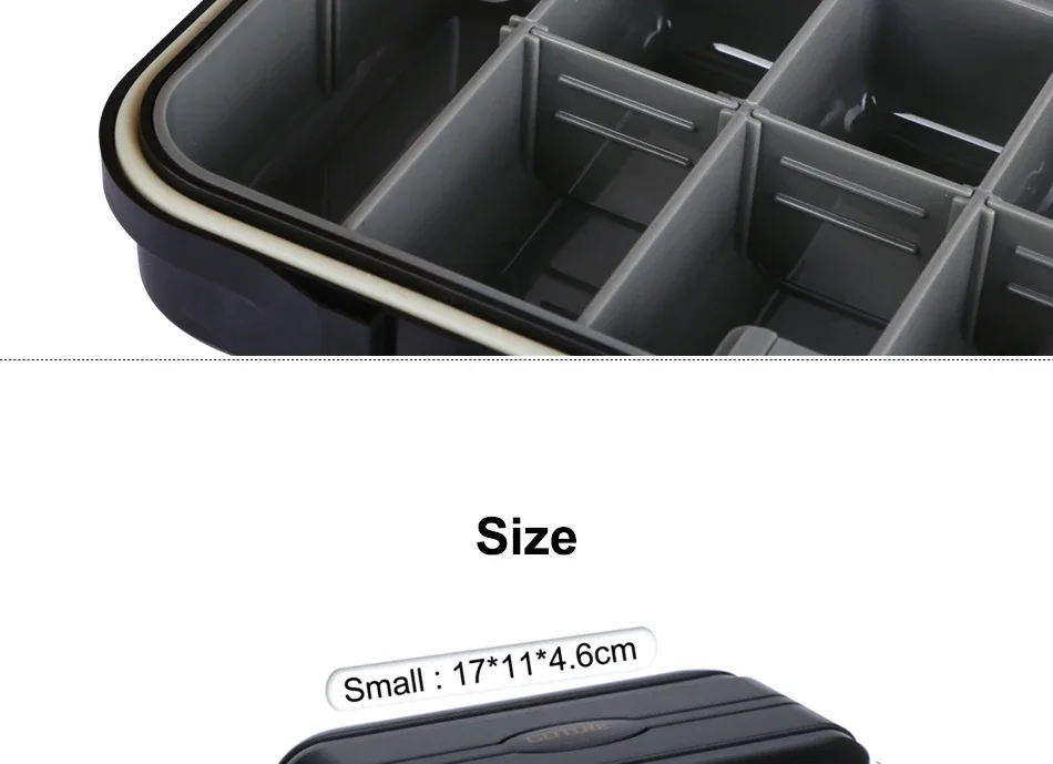 Cuerpo de ABS de alta dureza, 24 compartimentos de gran capacidad para una variedad de accesorios de pesca, cebos, anzuelos, plomos, giratorios, cables, etc.