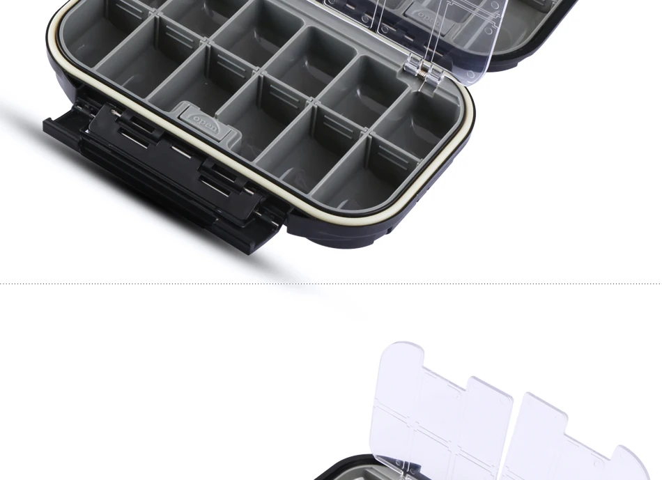 Cuerpo de ABS de alta dureza, 24 compartimentos de gran capacidad para una variedad de accesorios de pesca, cebos, anzuelos, plomos, giratorios, cables, etc.