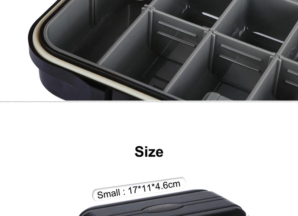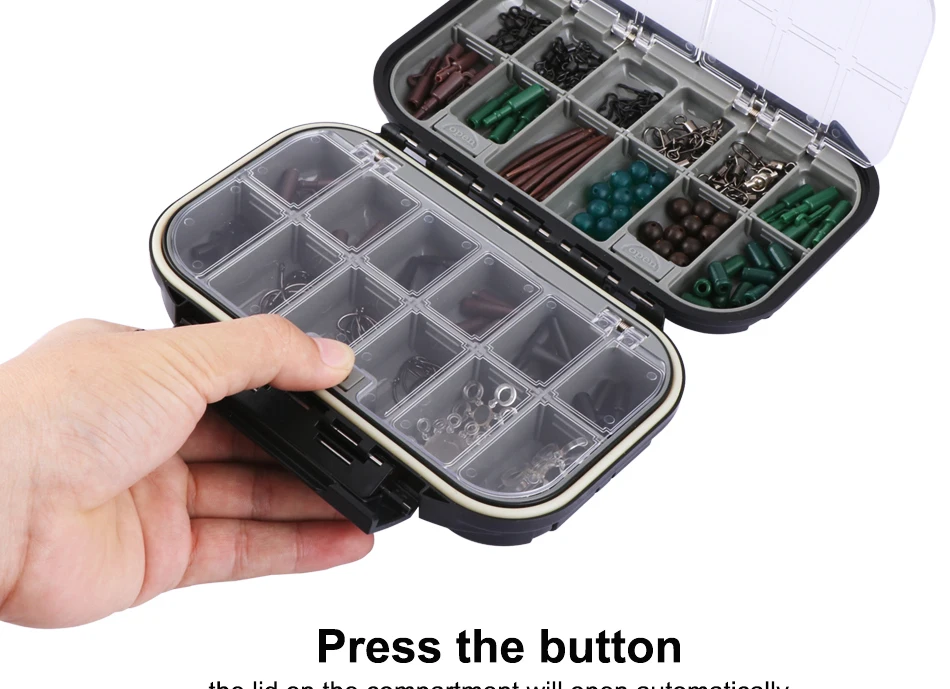 Función: Caja de accesorios para giratorios de pesca, anzuelos de pesca, plomos de pesca, etc.