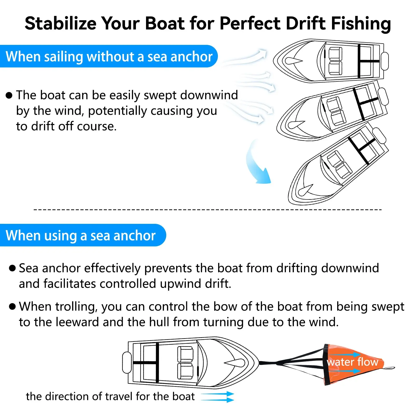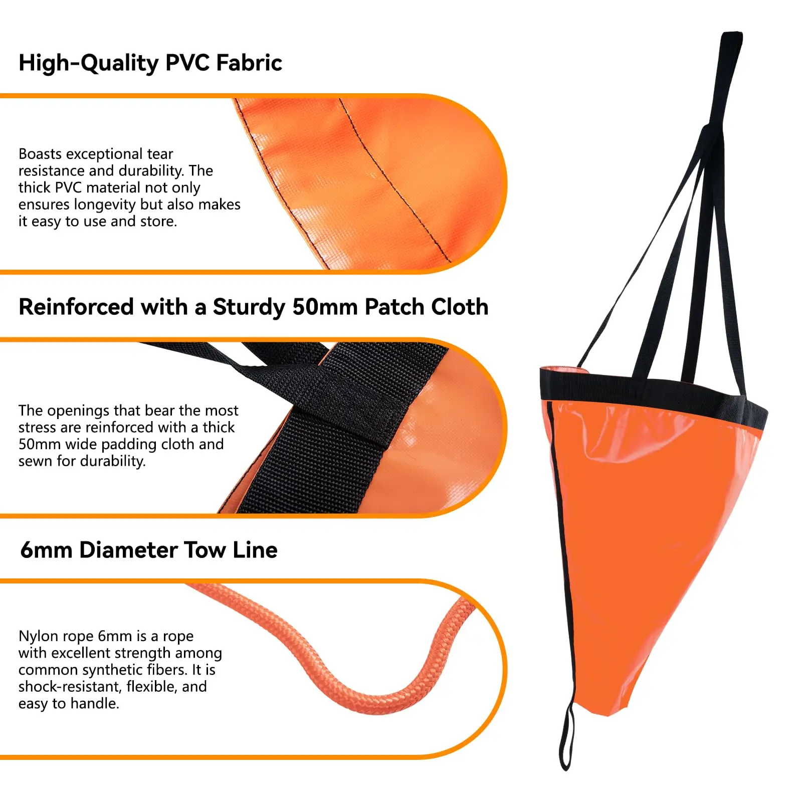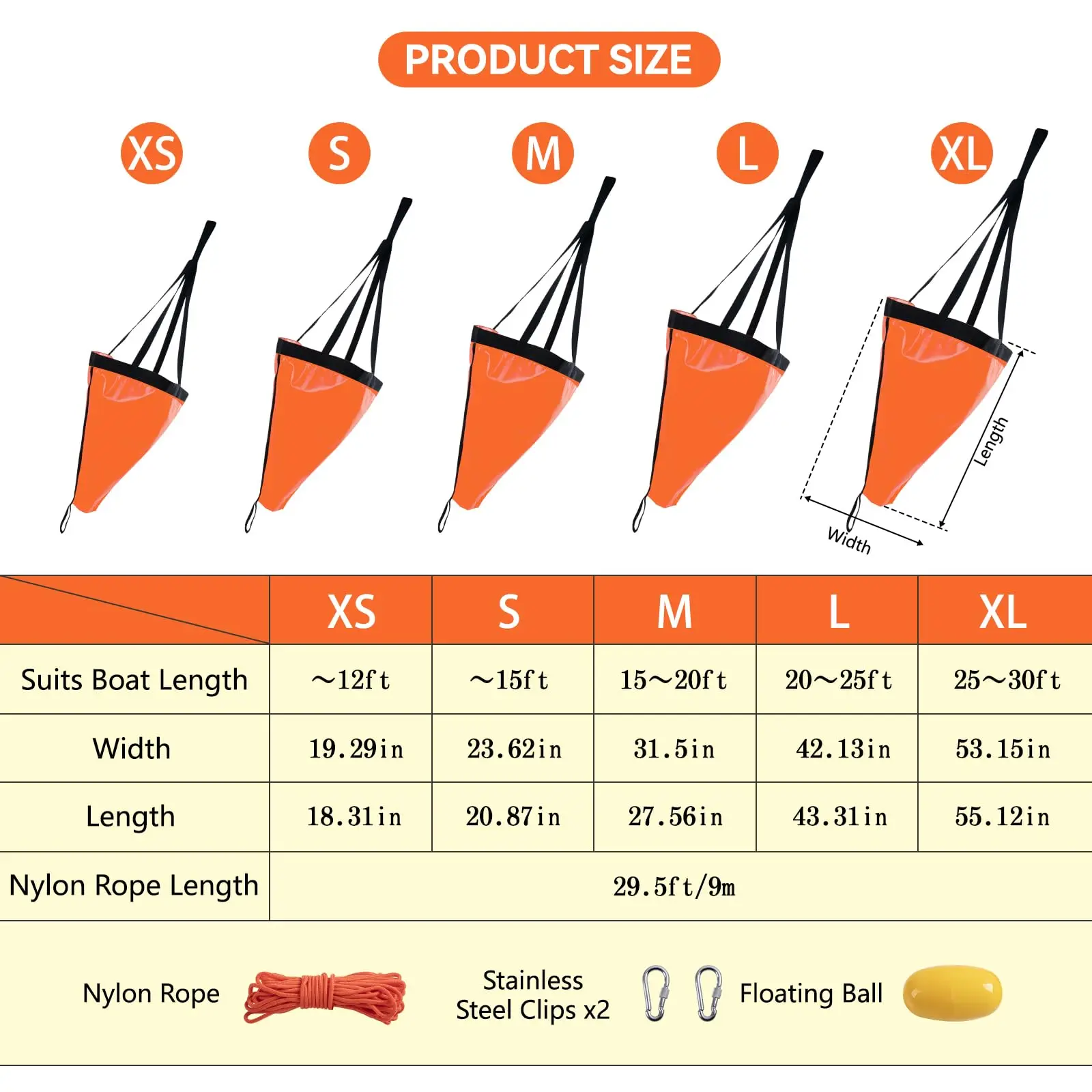 Goture-calcetín de deriva de 19 "/24"/42 pulgadas, ancla marina, Drogue con cuerda de remolque para Kayak de 30 pies, bola de boya para pesca, calcetín de arrastre para barco