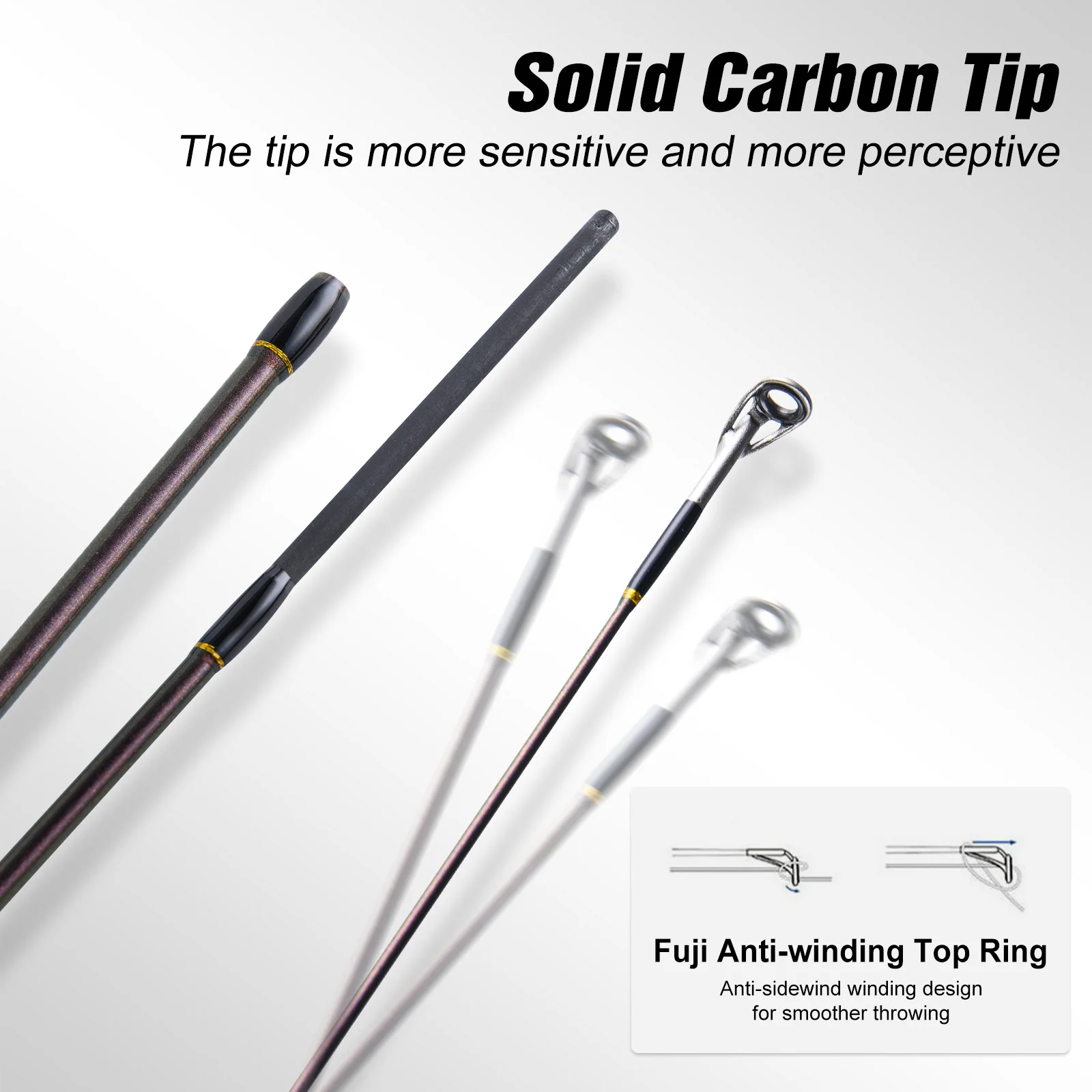 【Tela de carbono 30T + 40T 】 La caña de pescar ultraligera utiliza tela de carbono 30T + 40T, con mayor densidad, mejor estabilidad y más durabilidad.