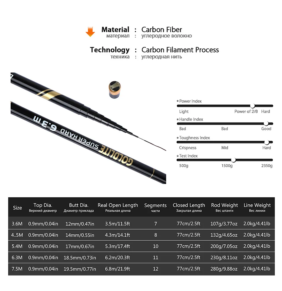 Tamaño: 3,0 M/3,6 M/4,5 M/5,4 M/6,3 M/7,2 M