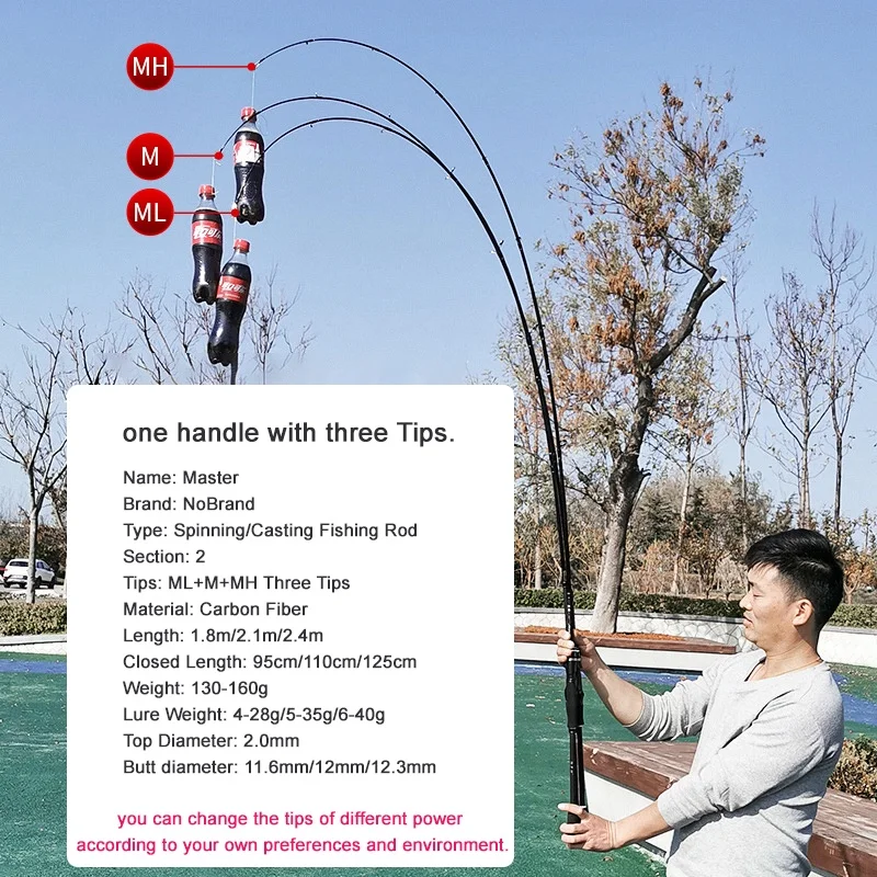 Goture-caña de pescar de fibra de carbono Master ML + M + MH, caña de pescar giratoria de tres puntas, 1,8 M, 2,1 M, 2,4 M
