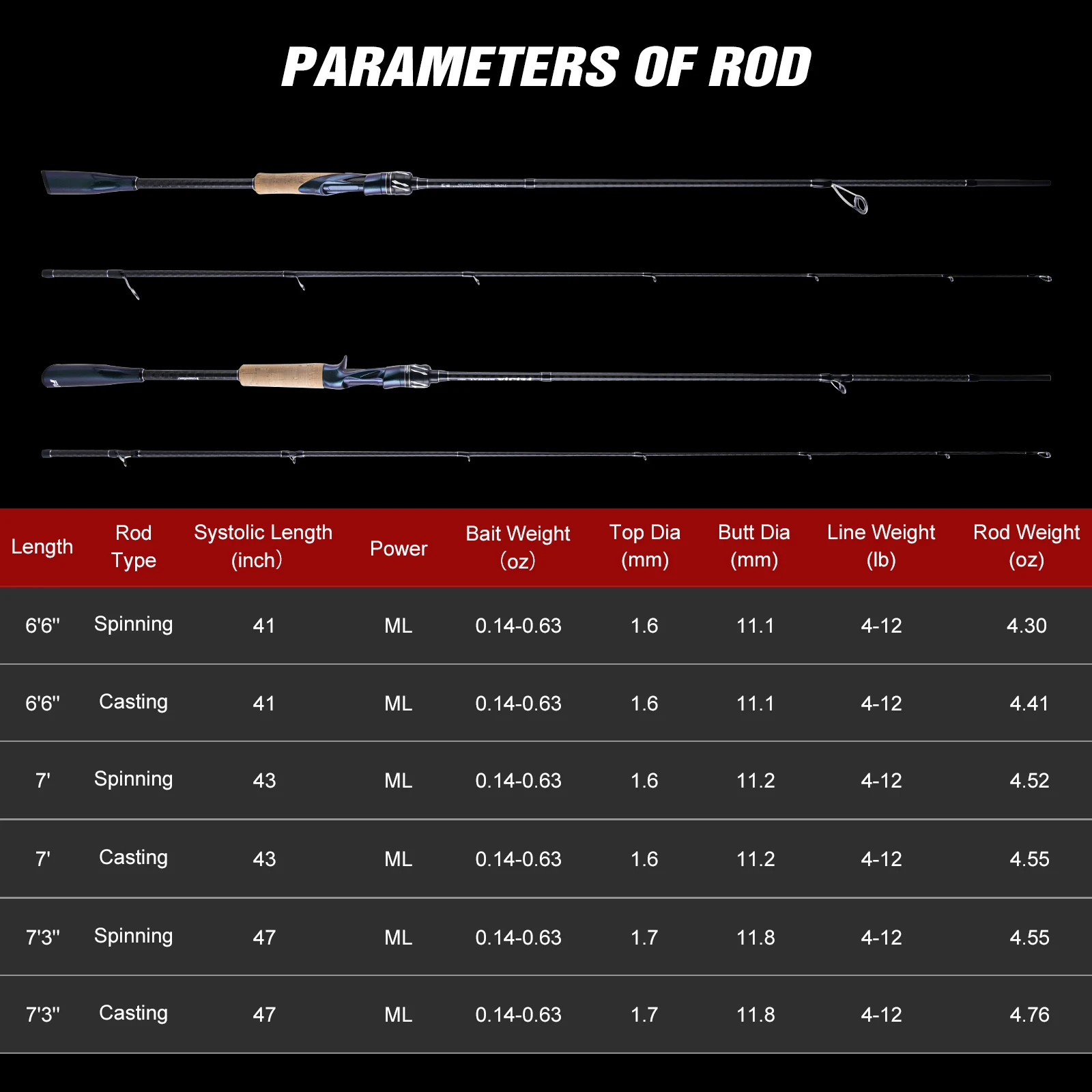 Goture-caña de pescar de fundición giratoria de fibra de carbono, 1,98 m, 2,13 m, 2,28 m, acción rápida ML, potencia ultraligera, sensible, 4-18g