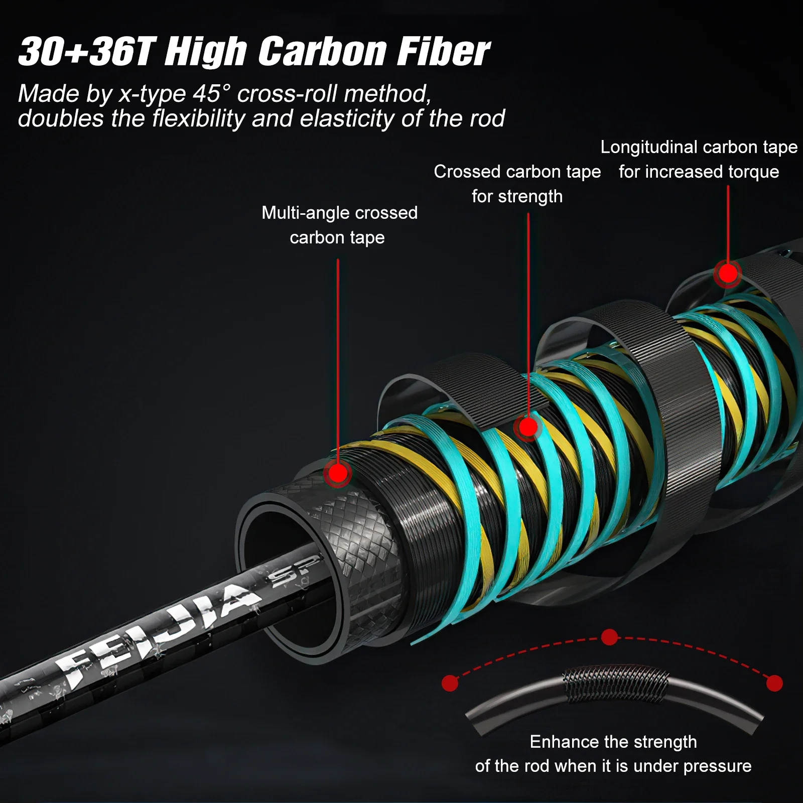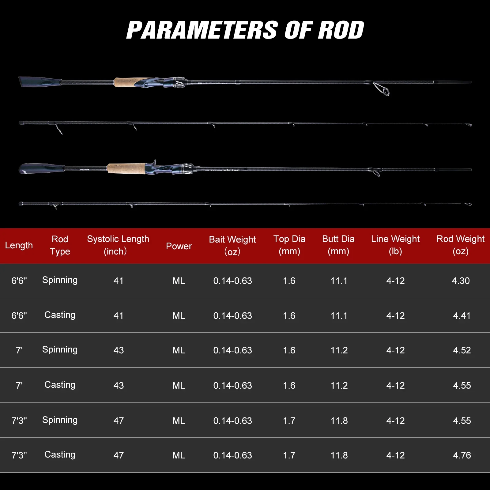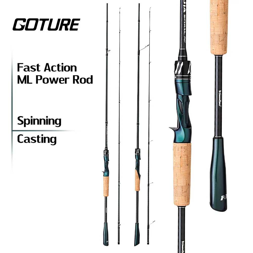 Goture-caña de pescar giratoria de fibra de carbono, 2 piezas, 1,98 m, 2,13 m, 2,28 m, acción rápida, ML Power, ultraligera, 4-18g