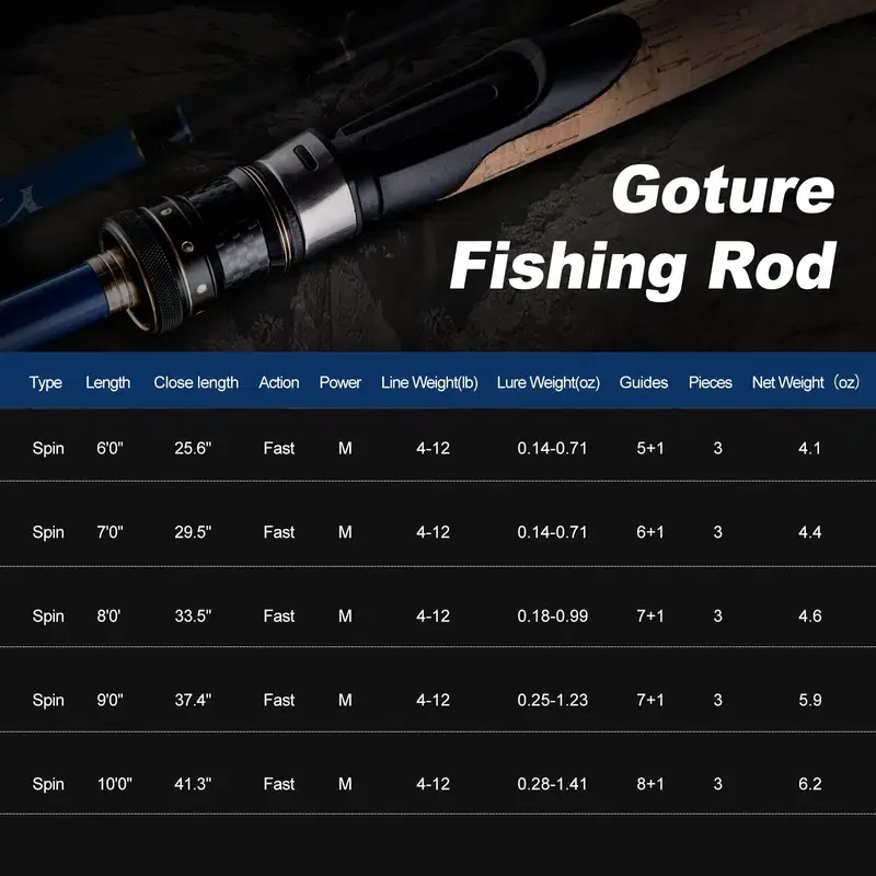 Goture 1,8-3m caña giratoria de fibra de carbono portátil M Power 4-32G caña de pescar de viaje con mango de corcho 6-10 pies
