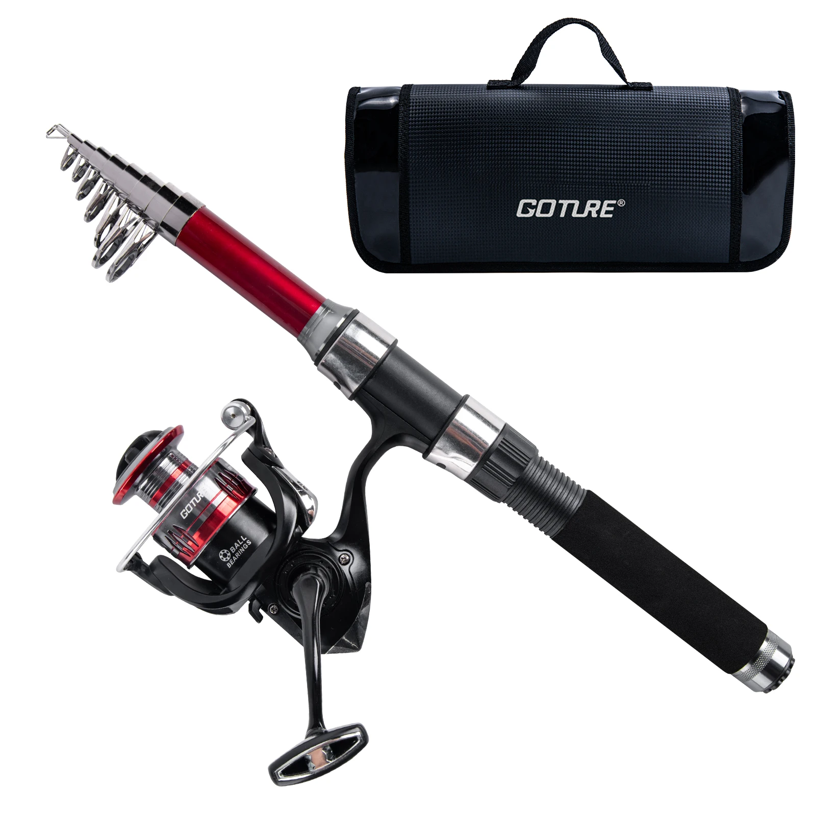 Goture-Carretes para caña de pescar de mar, combo de caña de carbono telescópica de 1,8-2,7m, carrete giratorio serie 3000 con bolsa impermeable, púa para lubina