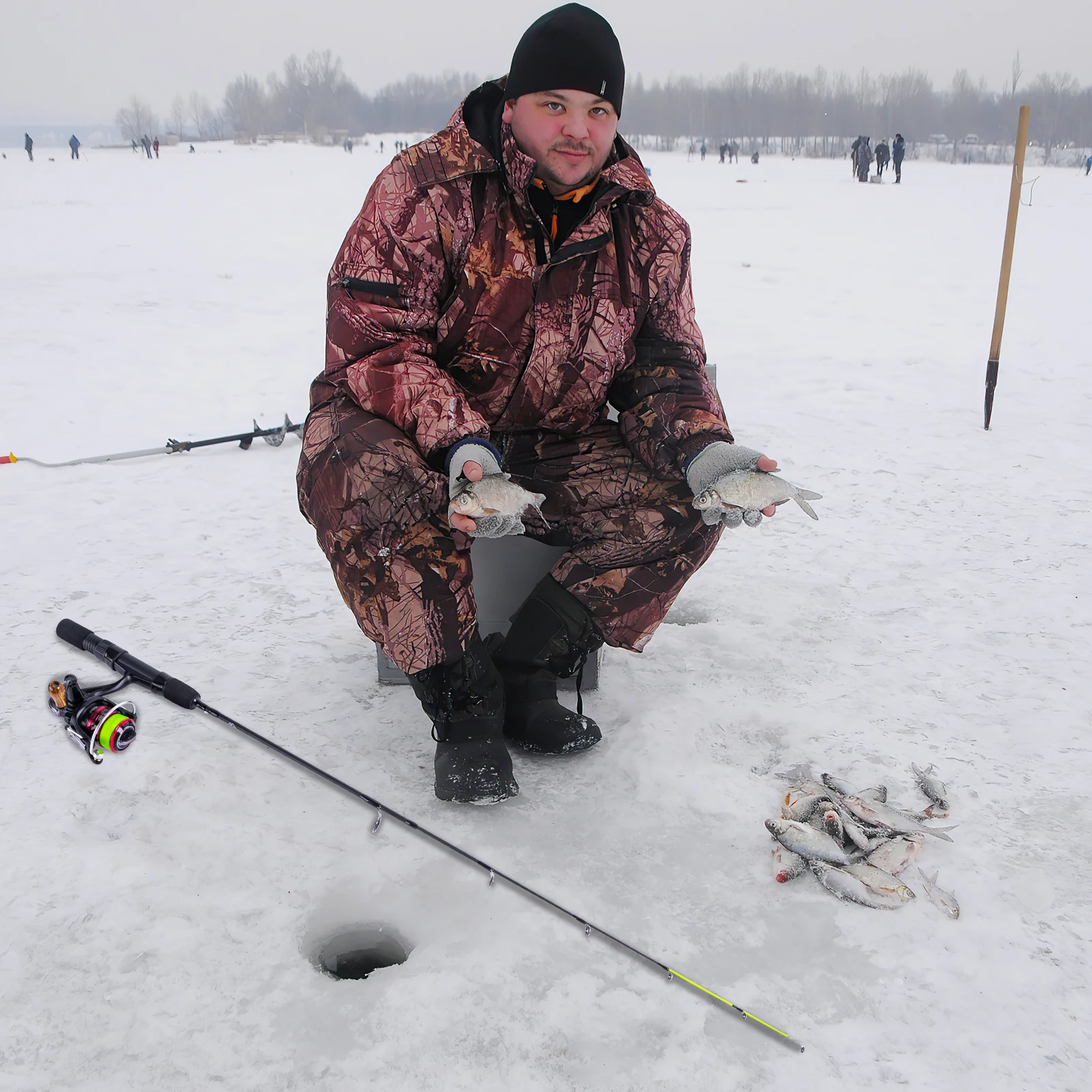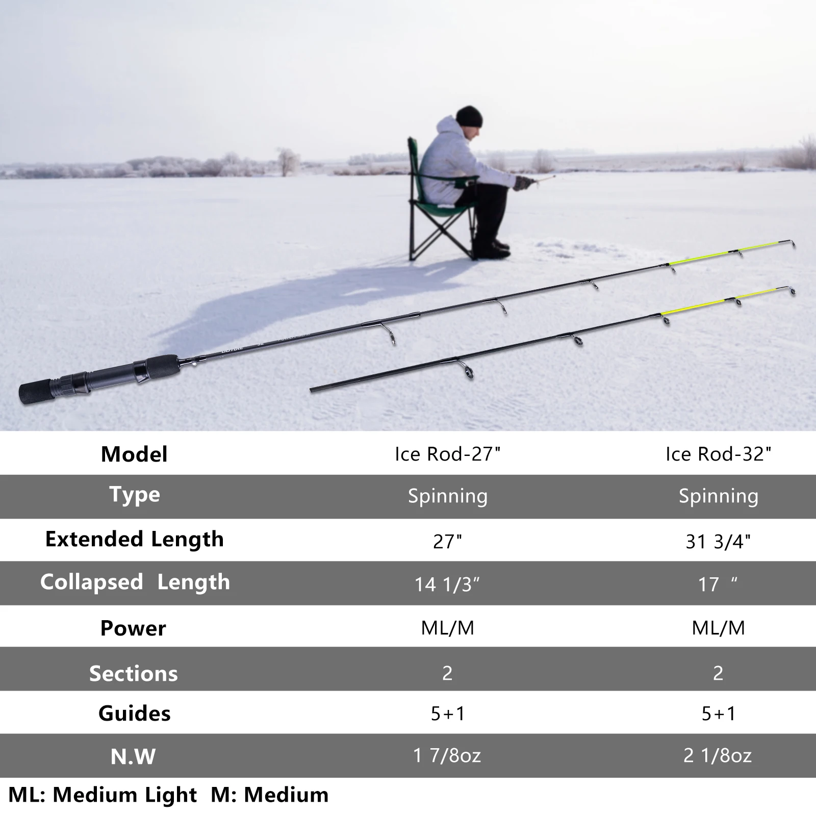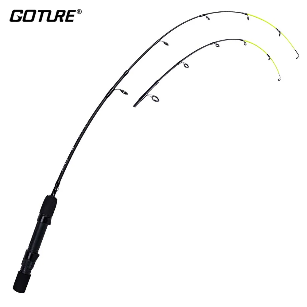Goture-caña de pescar portátil de fibra de carbono para invierno, caña de pescar ultraligera de 28 "y 32" para carpa, ML + M, doble punta
