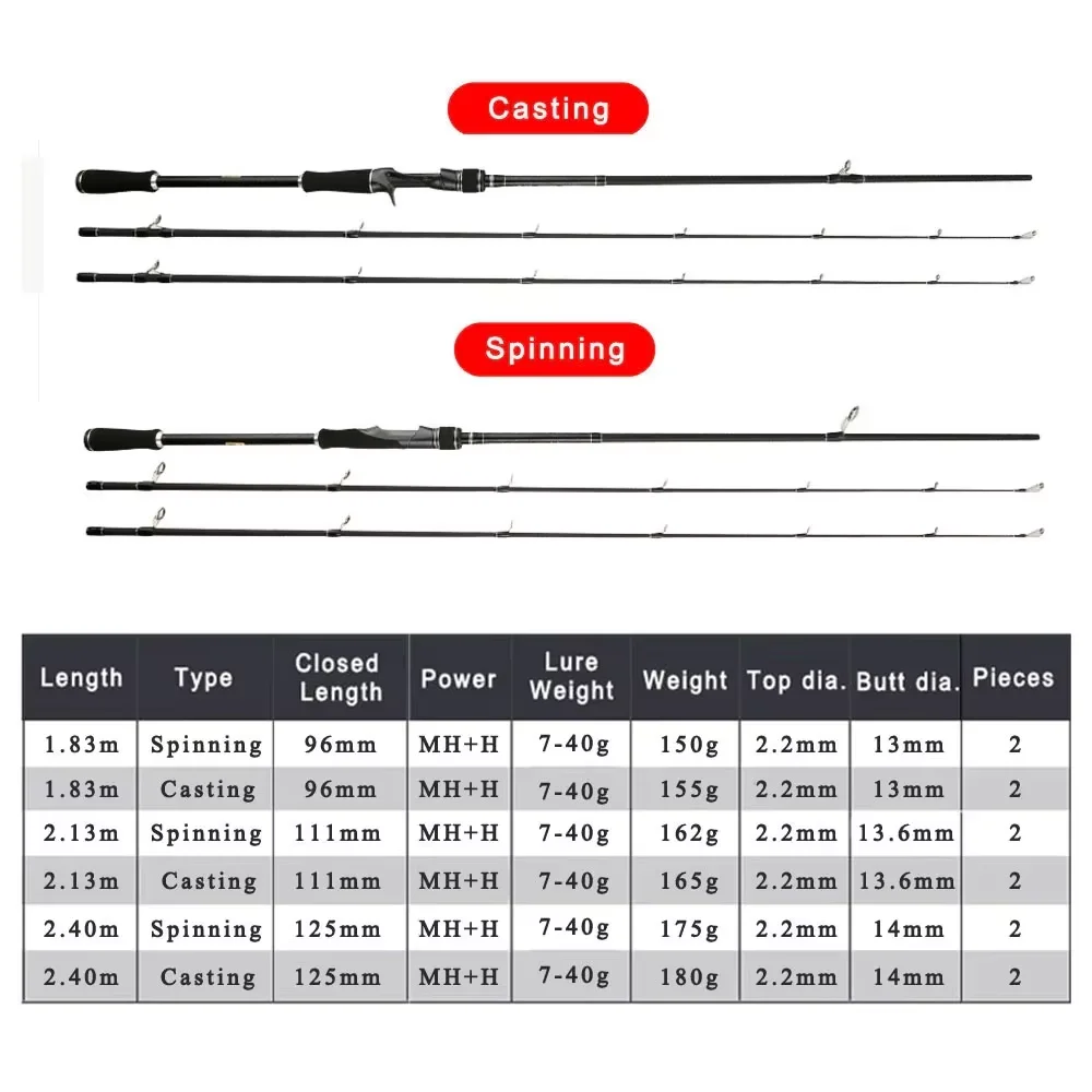 Goture MH + H caña de pescar de doble punta 30T caña de fundición giratoria de fibra de carbono 1,83 m-2,4 m caña de señuelo para agua salada agua dulce 7-45 g