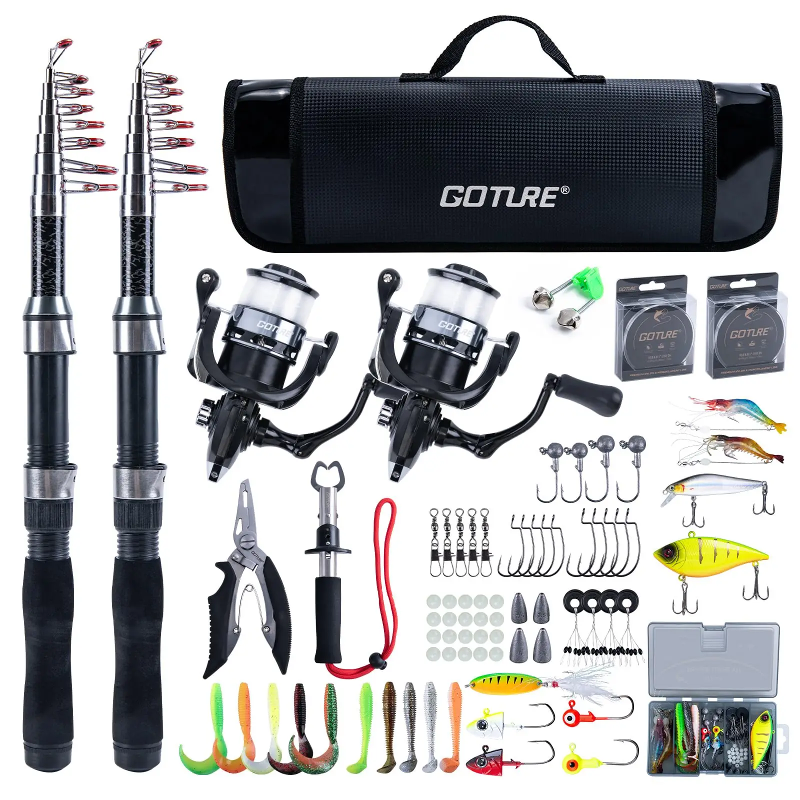 Goture 2 Canna de pescar 2 Combos Kit 1.9M-2.7M Juego de caña de pescar telescópica con bolso de almacenamiento impermeable para viajes