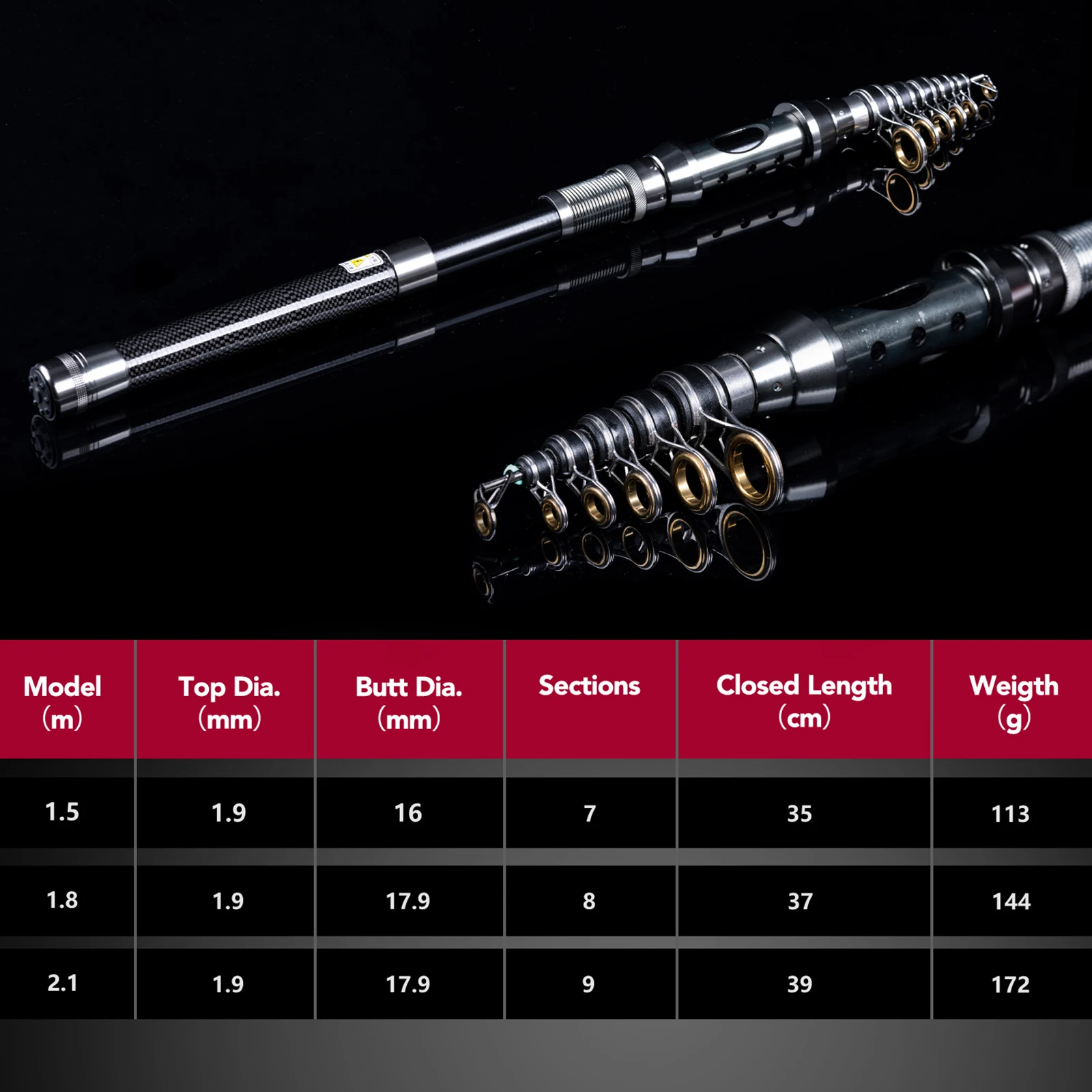 Goture-caña de pescar telescópica de carbono de tiro largo, caña de pescar ultraligera de distancia, aparejos de señuelo de pesca de viaje, 1,5 M-2,1 M