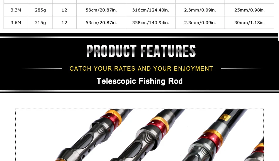Goture Sea Boat Rock caña de pescar 1,8-3,0 M fibra de carbono caña de pescar telescópica para carpa lubina alimentador caña surf poste giratorioInformación básica: