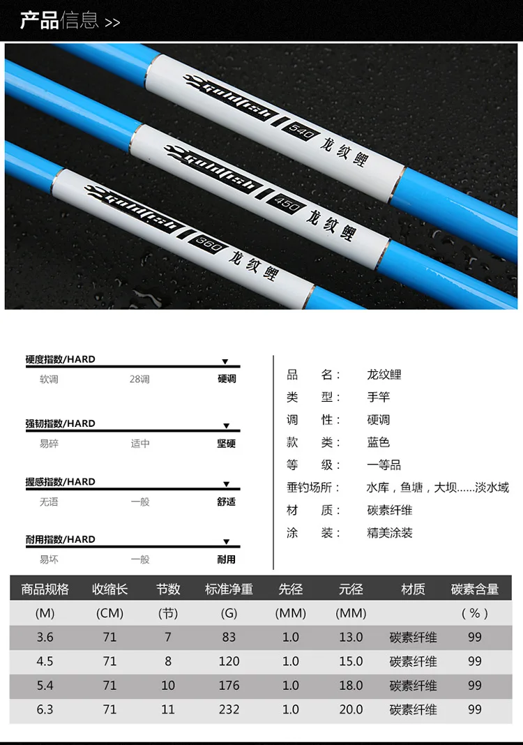 Tipo: caña de pescar carpa, caña de pescar, varilla telescópica, caña de mano