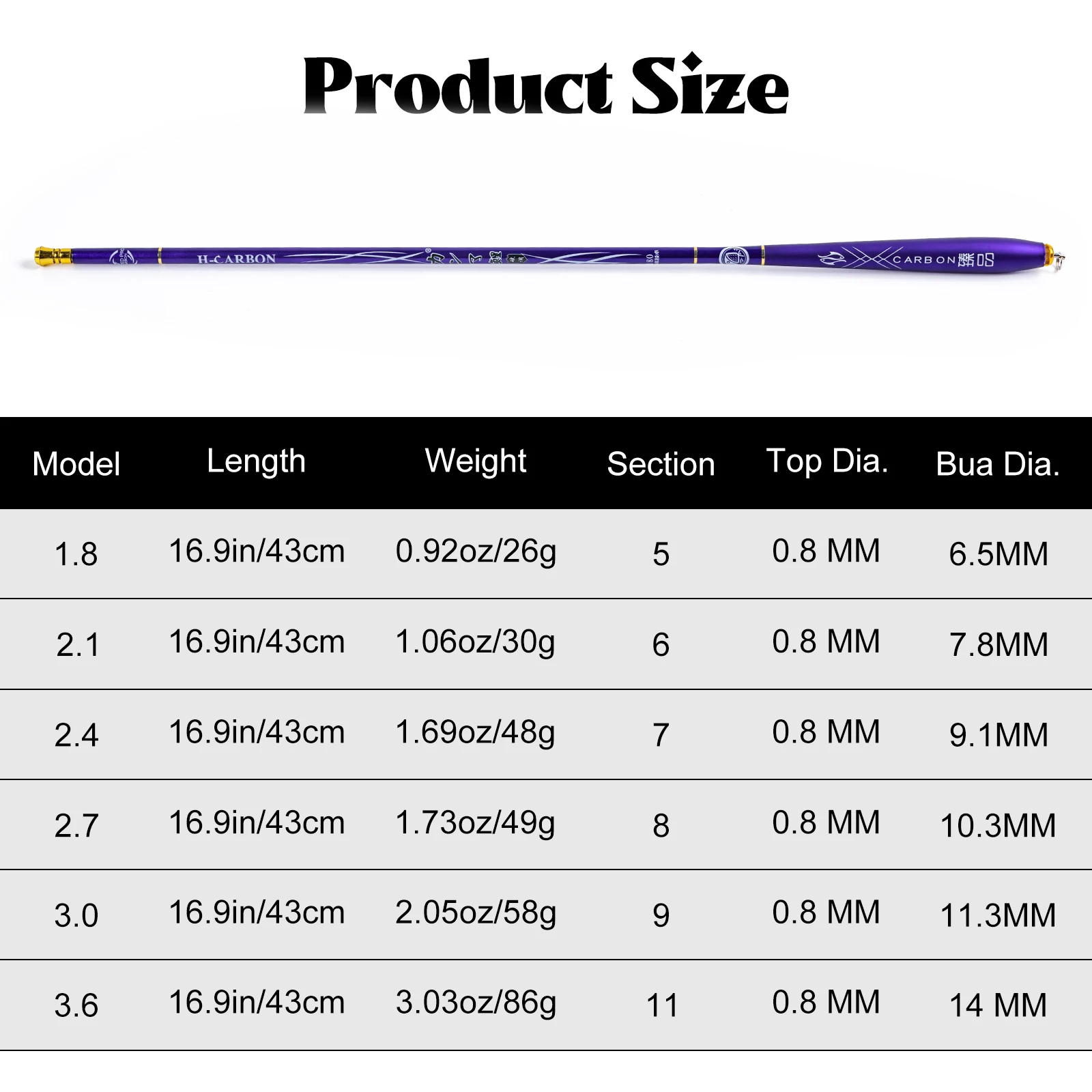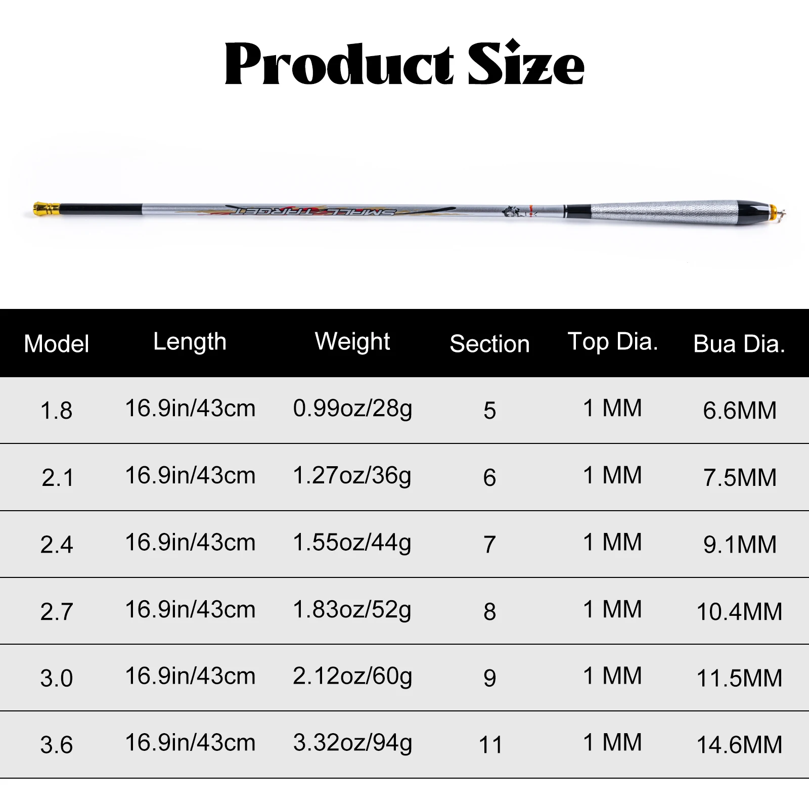 Goture-caña de pescar telescópica SMRLL TARGET/CARBON Mini Stream, 1,8 m-3,6 m, poste duro ultraligero para pesca de agua dulce