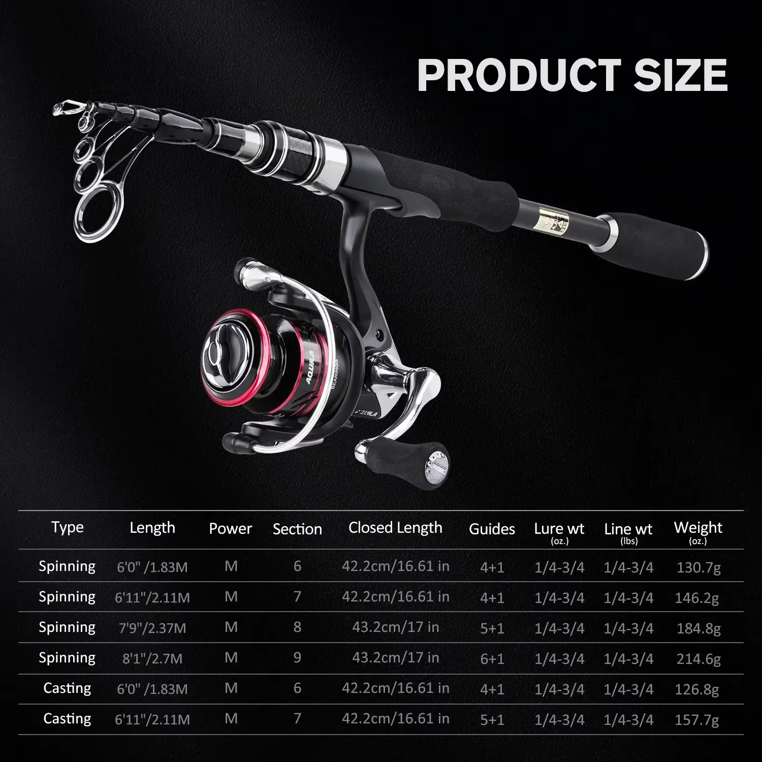 Goture-cañas de pescar telescópicas para pesca en agua salada, caña de pescar giratoria ultracorta portátil de 1,83 m, 2,1 m, 2,4 m y 2,7 m
