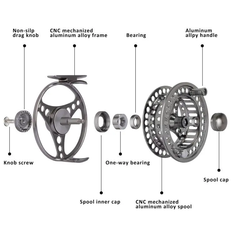 Viene con la manija derecha y cambia fácilmente a la manija izquierda. Buen carrete de corte de máquina por precio Cerca del color metal