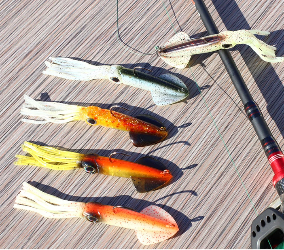 Goture-Cebo Artificial suave de calamar, cebo luminoso de 14cm y 36g, de plomo de PVC, sái, atún, luciérnaga, accesorios de pesca nocturna