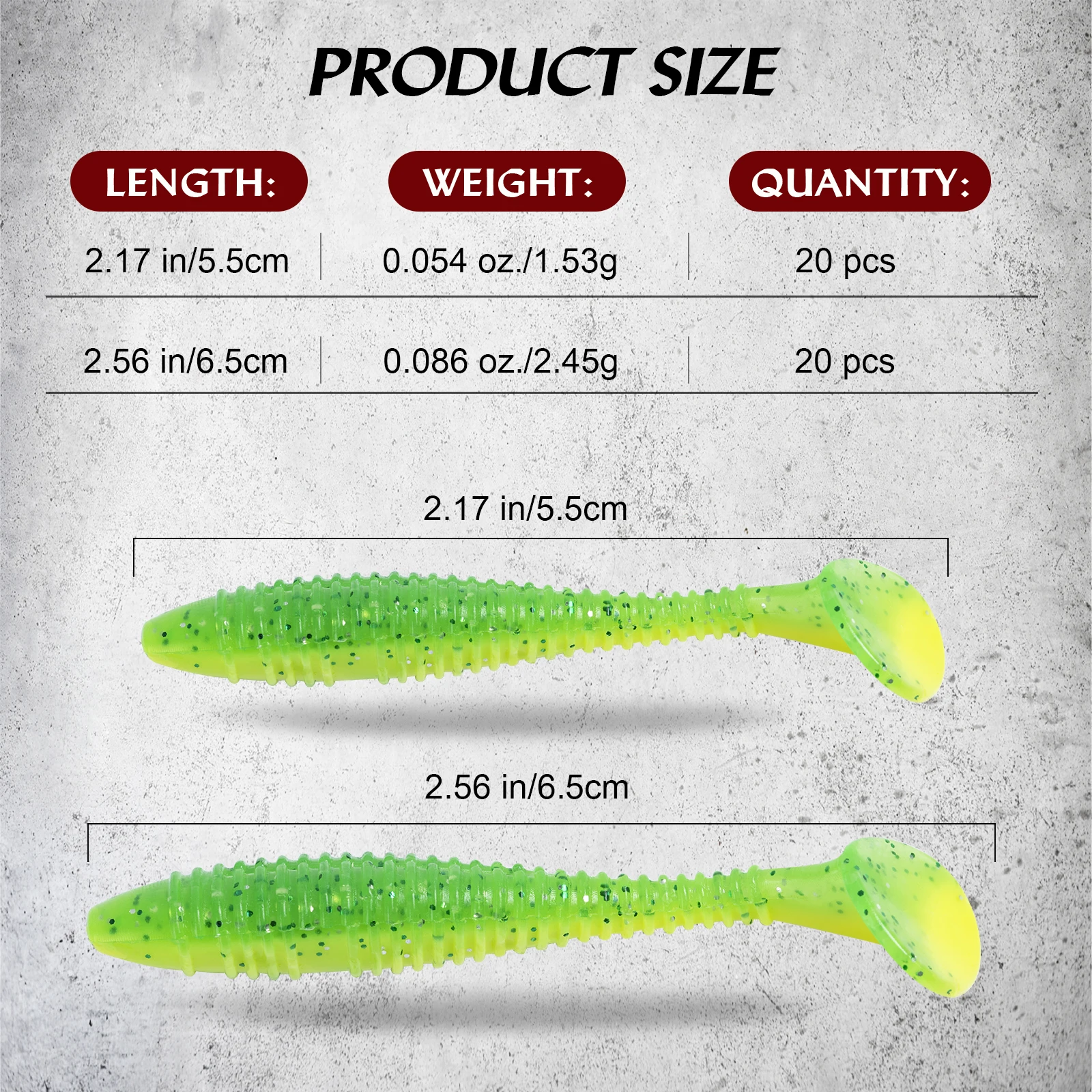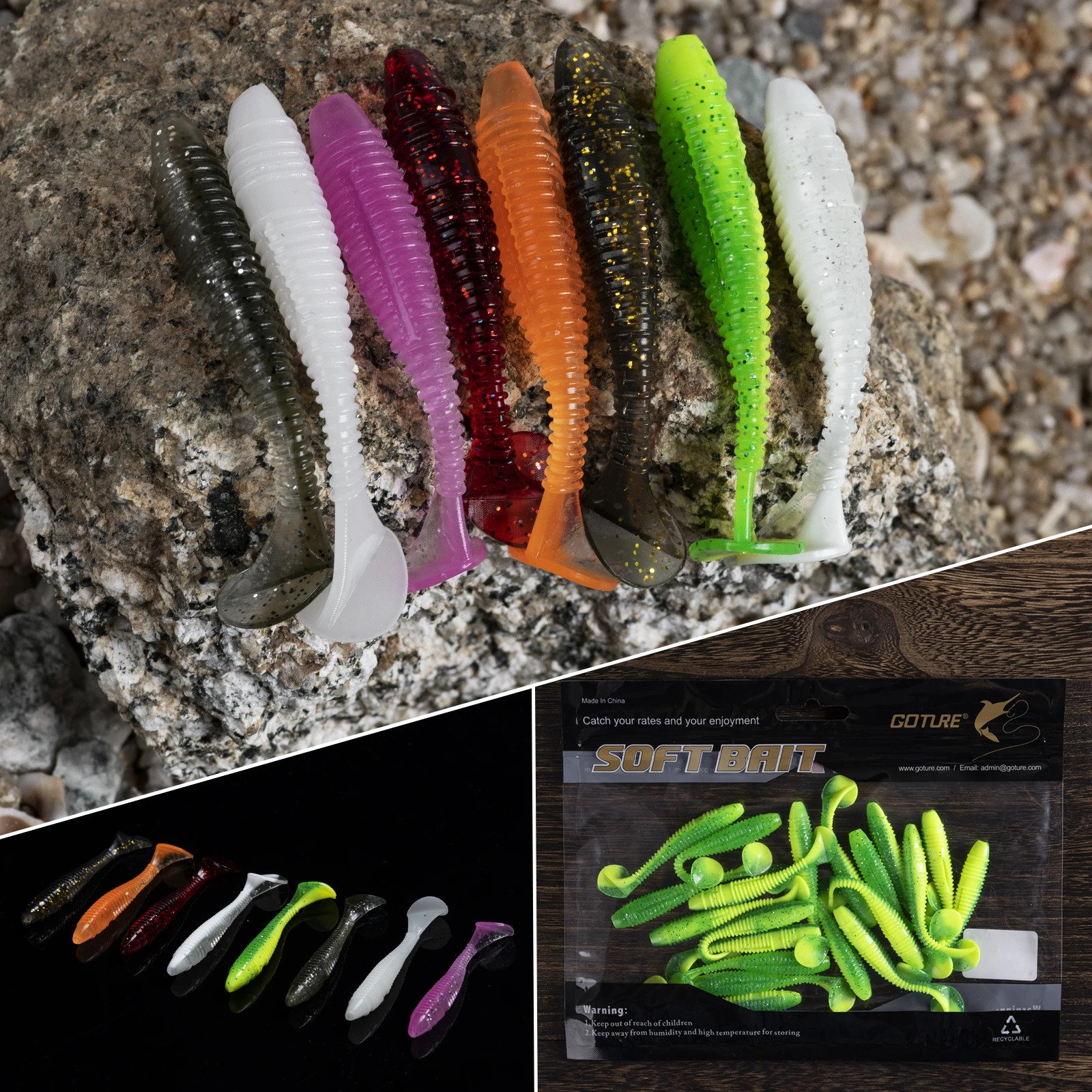 Goture-Cebo de silicona suave 20 piezas, señuelo de Pesca Artificial de 55mm y 65mm para Lucio, cola en T, Jigging