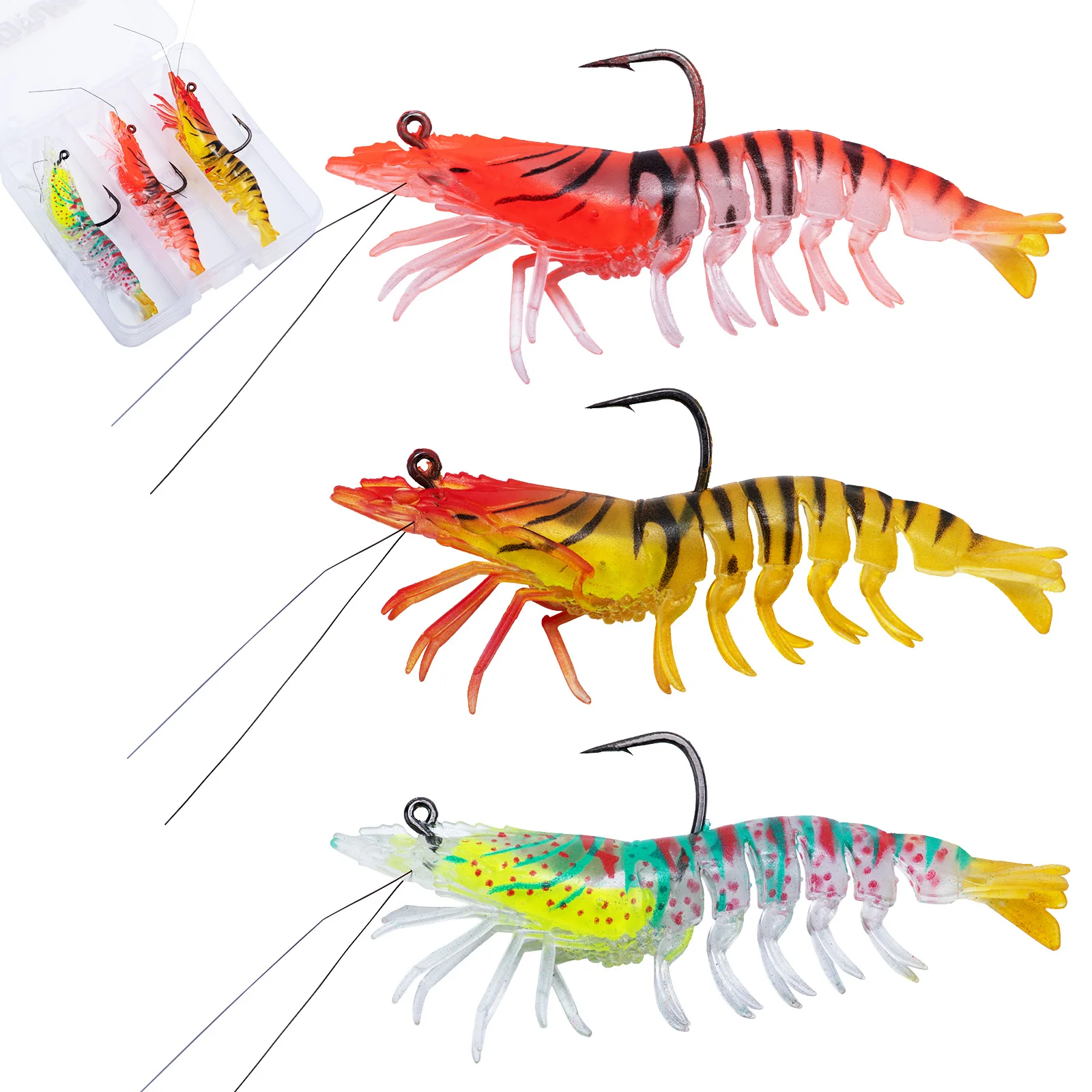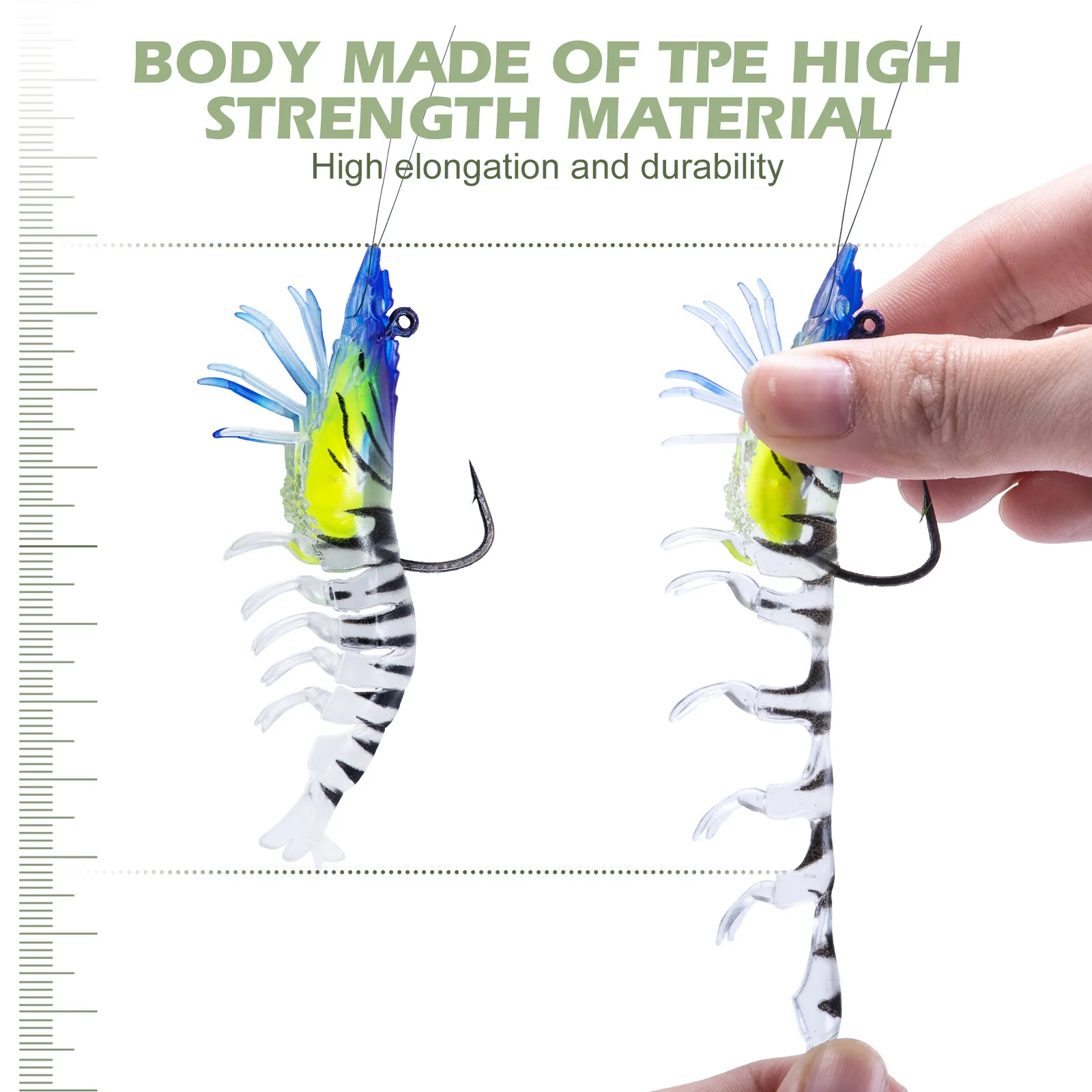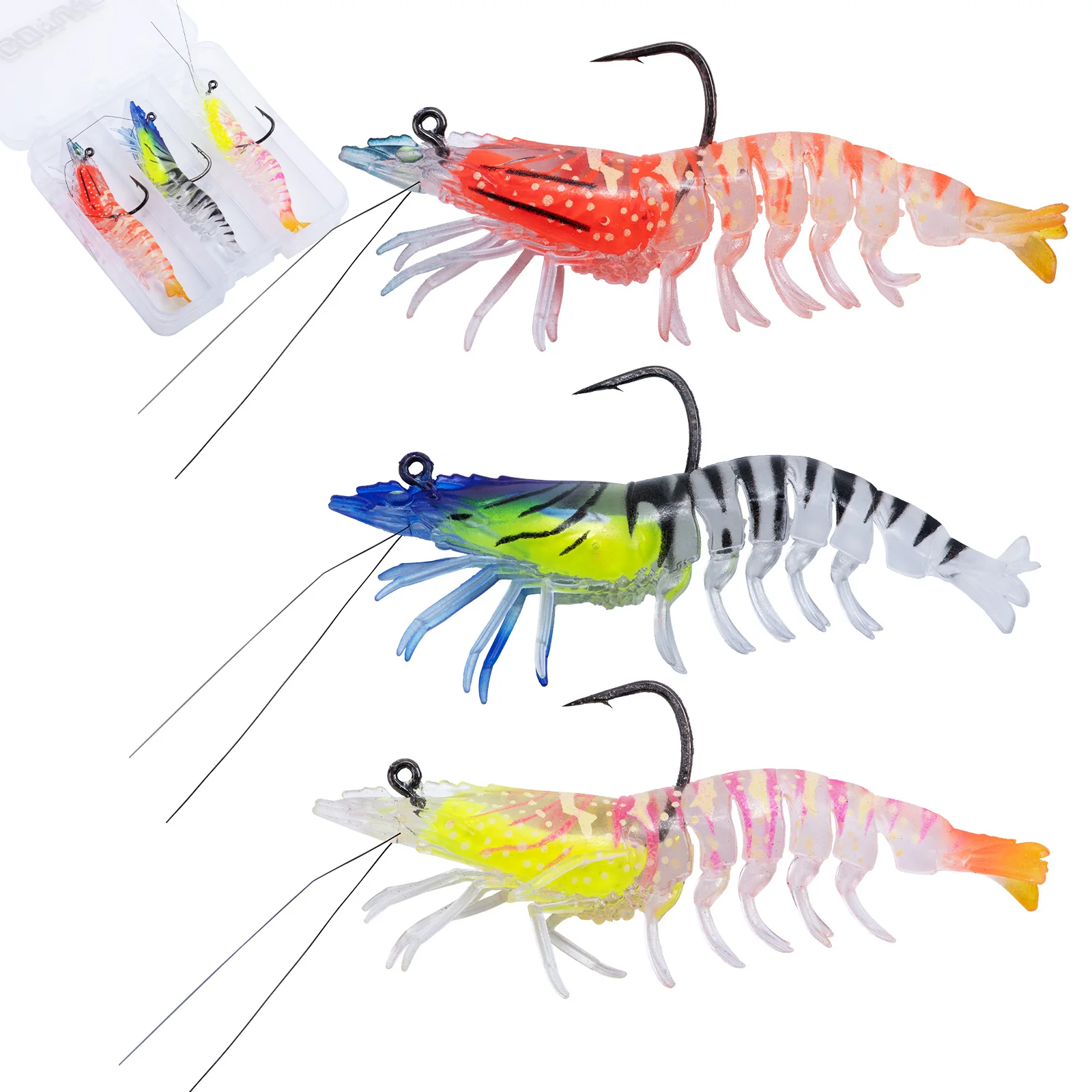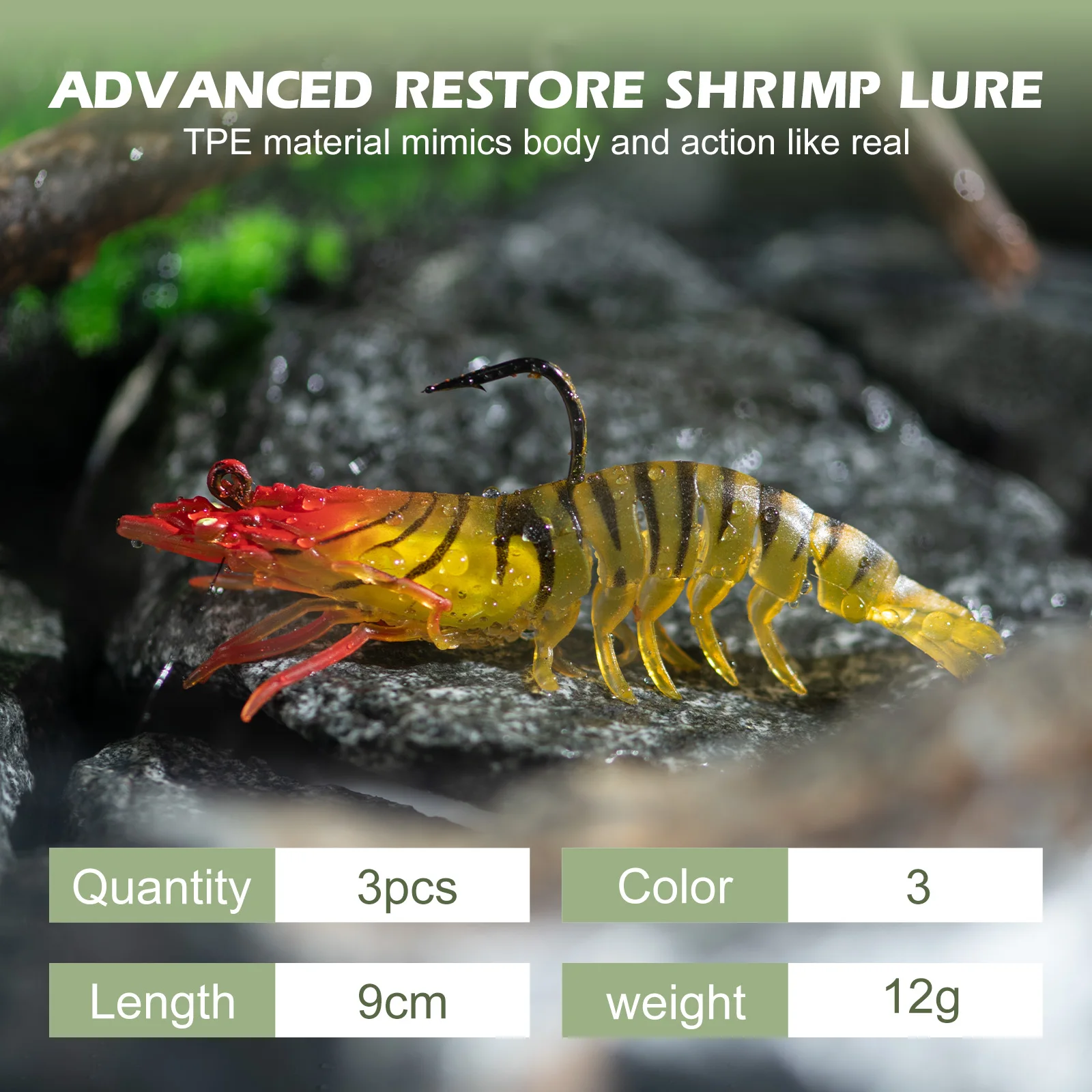 Goture-cebo suave de camarón falso de colores mezclados, 12g/90mm, anzuelo afilado de alta resistencia que se hunde, realista para aparejos de pesca, señuelo de carpa