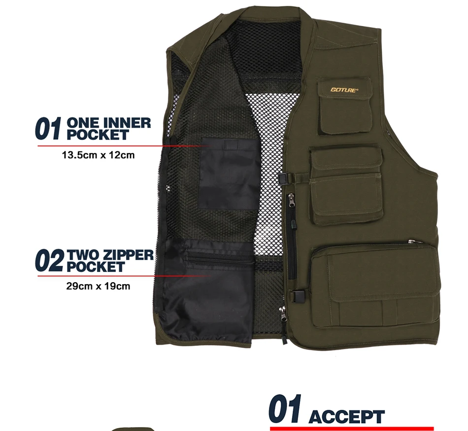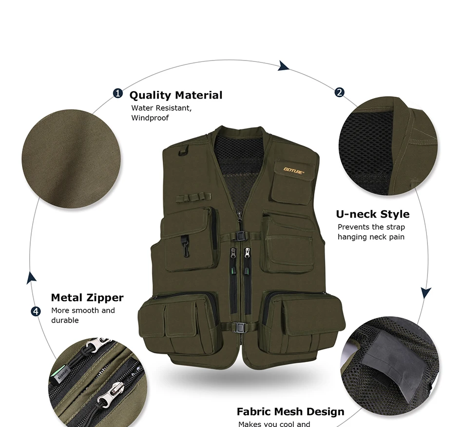 ¡Práctico! Los bolsillos múltiples le permiten almacenar su equipo de pesca, teléfono celular, BILLETERA, llaves, equipo de cámara y otras cosas pequeñas de forma segura.