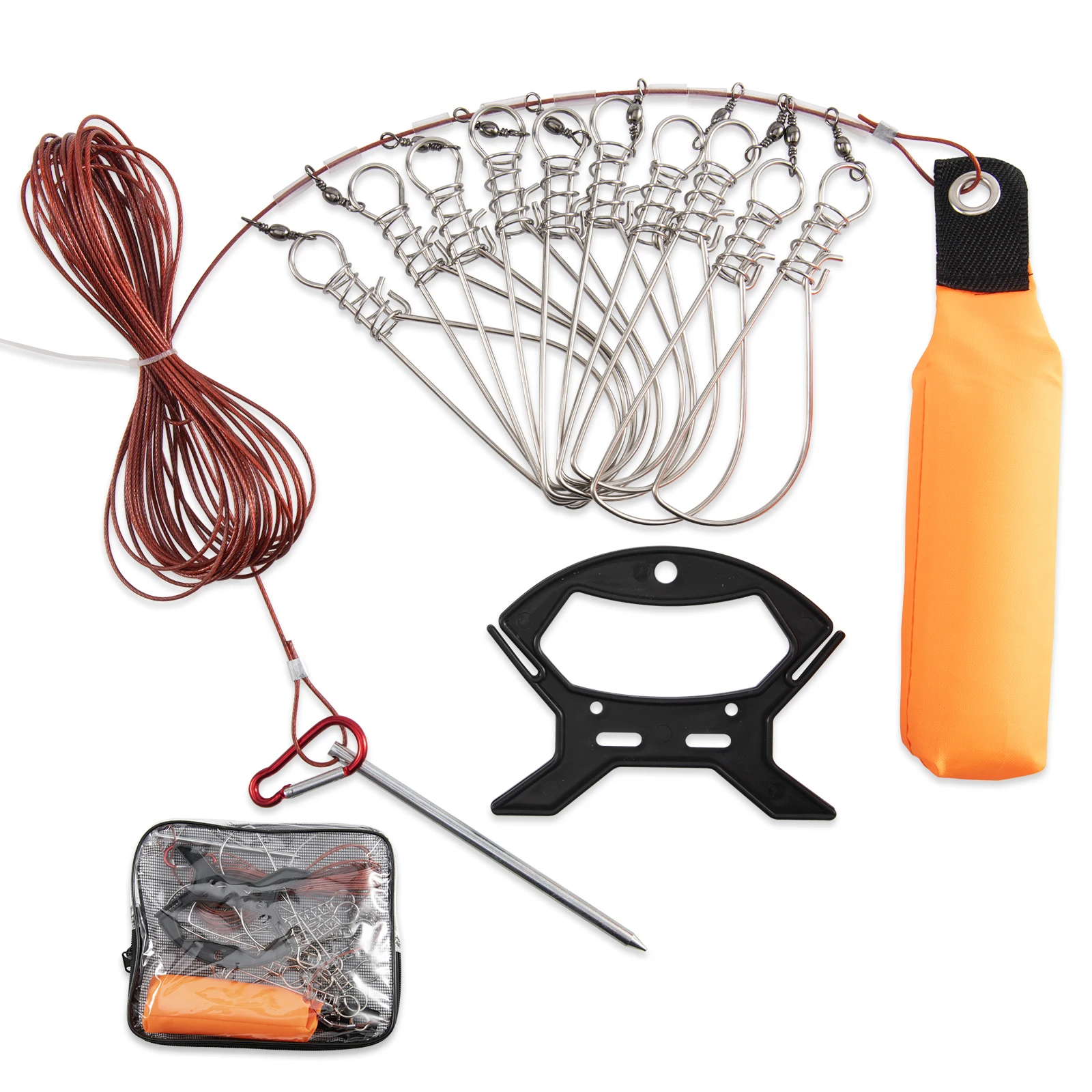 VENTAJAS: ●Mantenga a los peces vivos y frescos ●Los giratorios antienredos reducen la torsión. ●Conveniente para bloquear peces grandes ●Resistente a la corrosión y duradero ●Hebillas de 5m/10m y 510, suficientes para disfrutar de la pesca