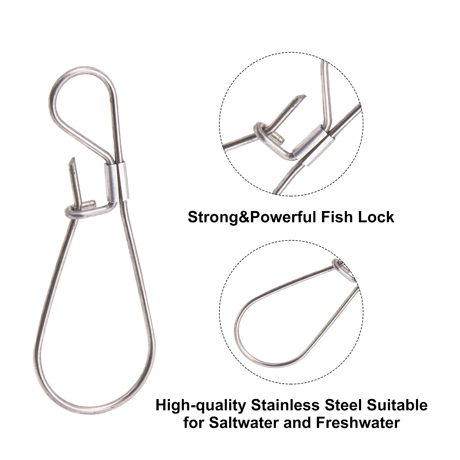 El candado de pesca está hecho de acero inoxidable que tiene el efecto de anticorrosión y prevención de óxido, y se puede utilizar repetidamente. Es adecuado para agua salada y agua dulce.
