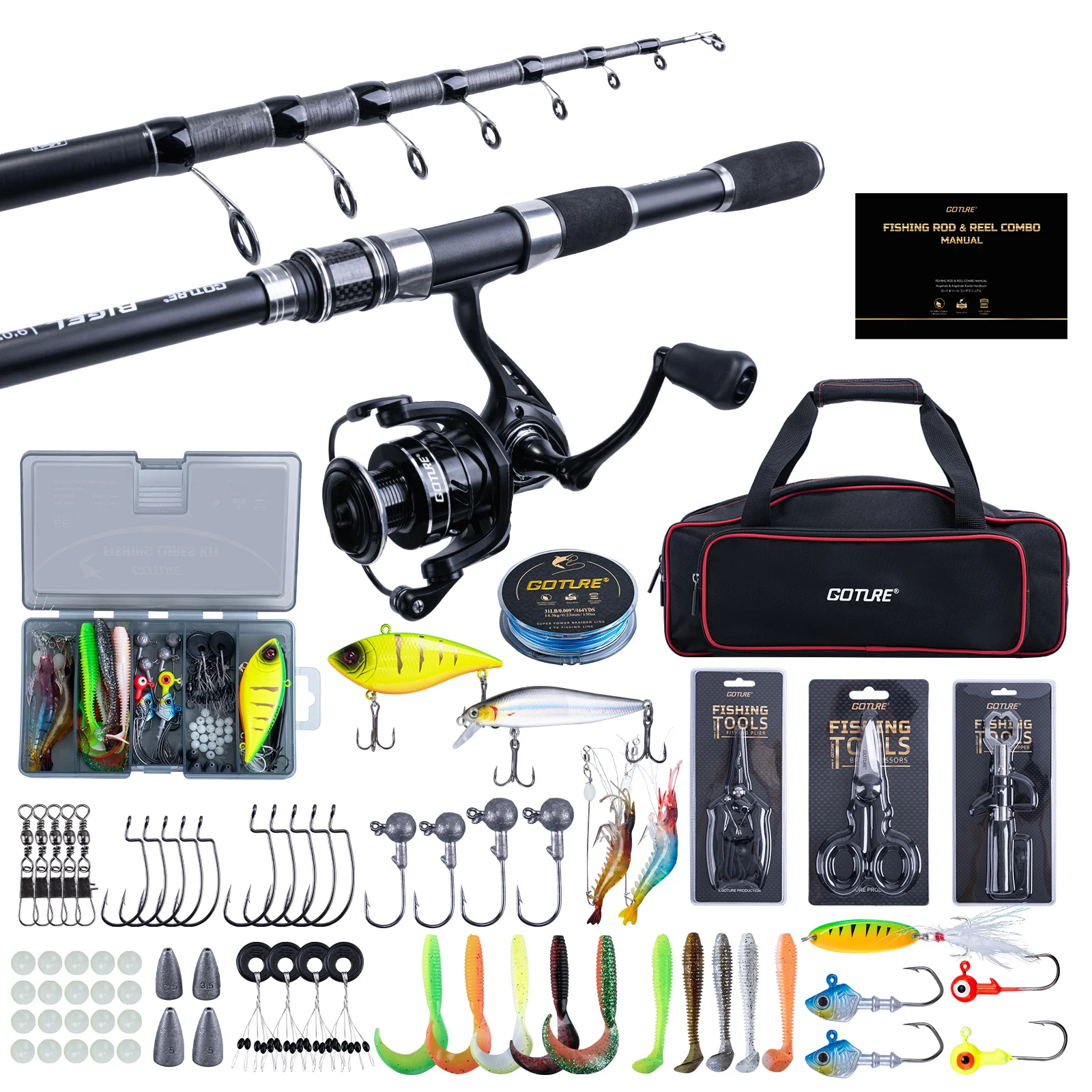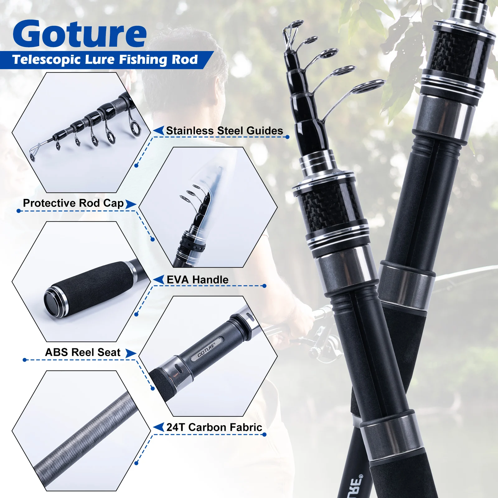 Goture-combinación de carrete y caña de pescar telescópica de fibra de carbono, herramienta de aparejos con bolsa de transporte Oxford 900D, Combo de caña de pescar de viaje