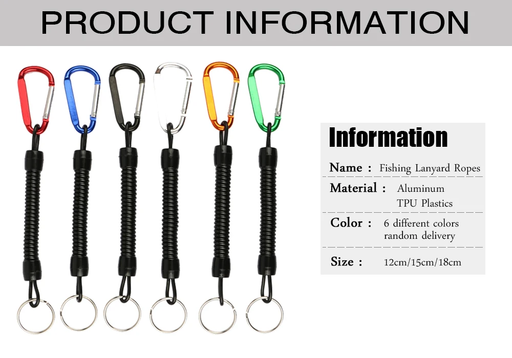 Goture Cuerdas de Cordón de Seguridad para Pesca, Cuerda de Retención con Mosquetón, Bloqueo Seguro, Accesorios de Aparejos de Pesca, 12cm/15cm/18cm, 3 piezas