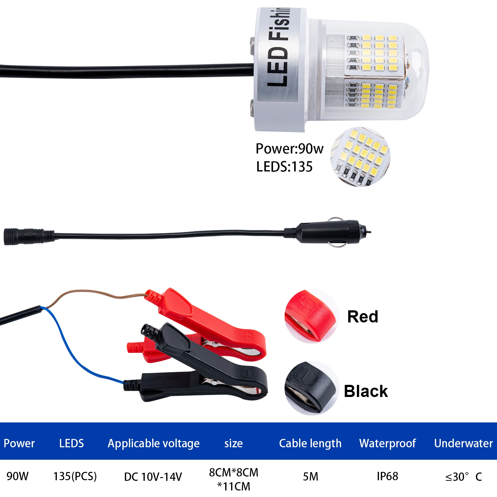 Goture DC10-14V luz de pesca submarina 45W 90W 135 Uds LEDS luz de pesca sumergible subacuática IP68 lámpara de popa marina