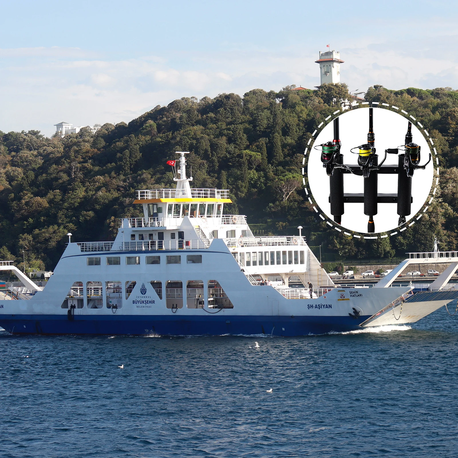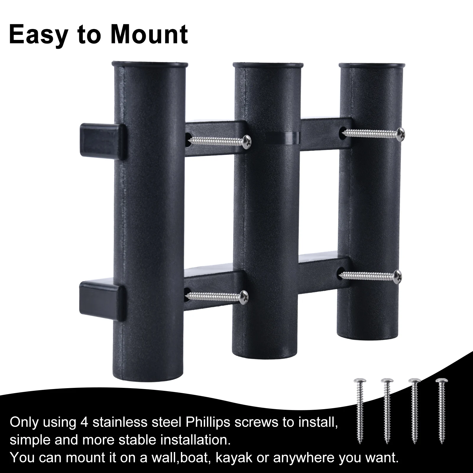 Goture-estante para caña de pescar en blanco y negro, soporte para 3 cañas de pescar para barco, soporte de tubo negro de plástico marino para pesca en barco