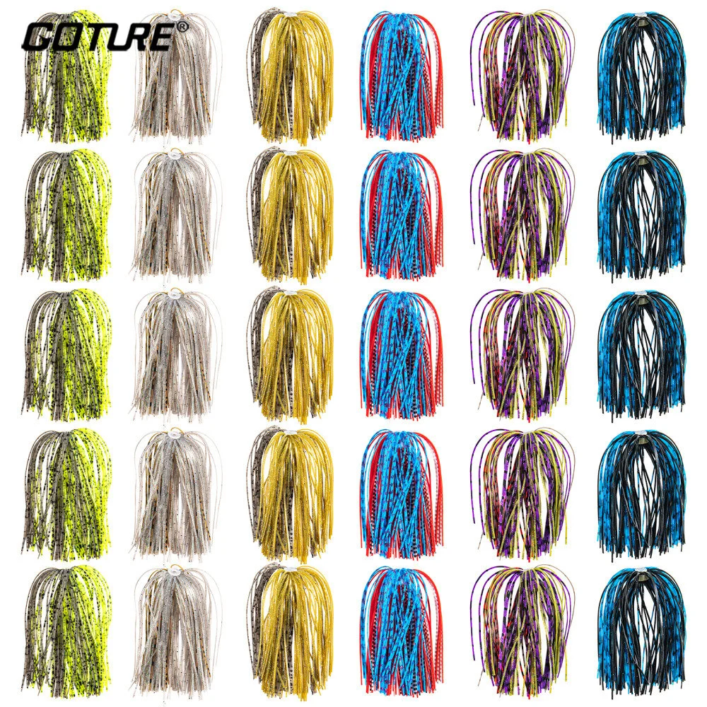 Goture-faldas de silicona de 50 hebras, señuelos de plantilla de goma, accesorios de pesca de calamar, DIY, spinnerbatis, buzzbaits, 30 unidades por lote