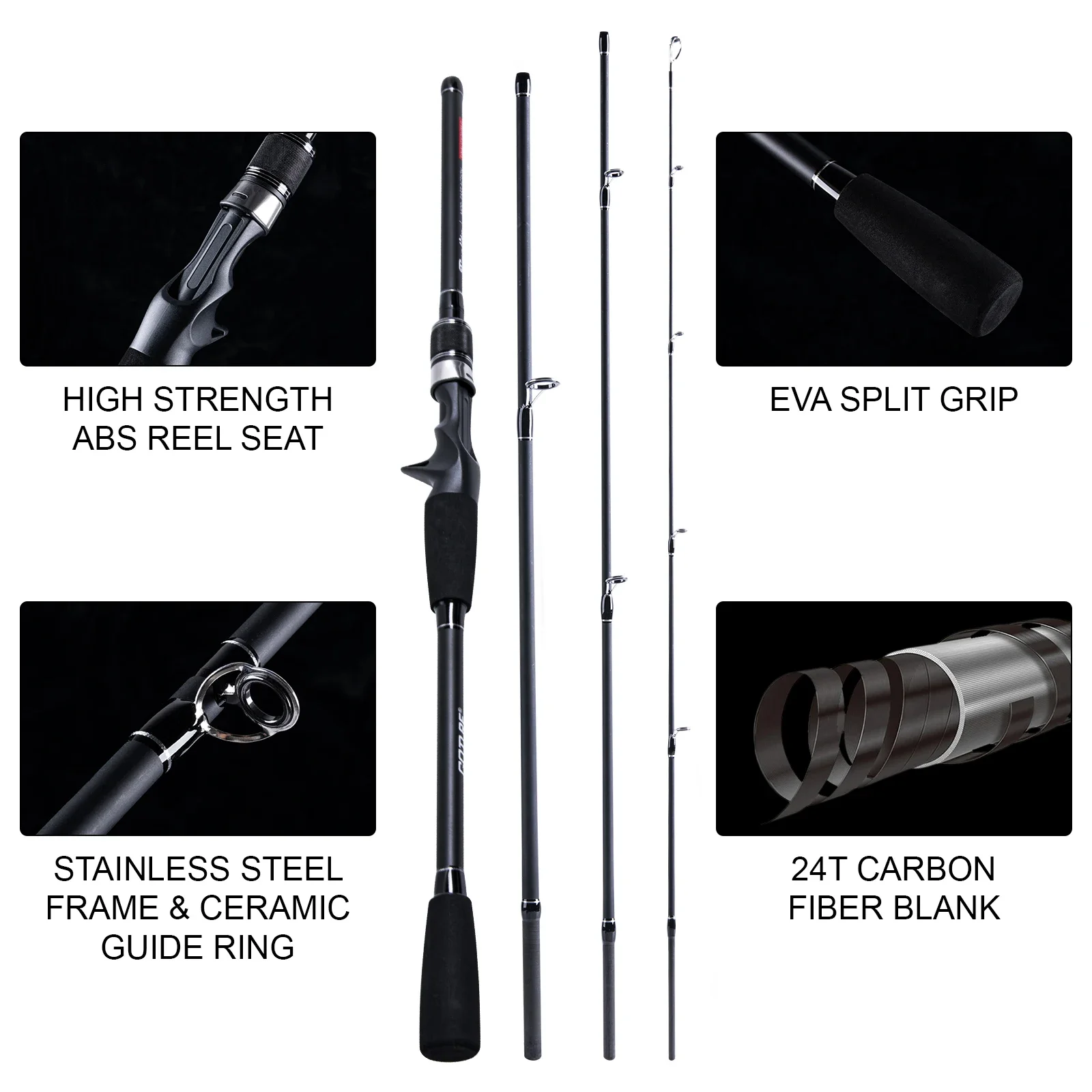 Goture Finality-caña de pescar de fibra de carbono, caña de pescar de fundición giratoria de 2,1 m, 2,4 m, 2,7 m, 24T, M/MH, 4 piezas