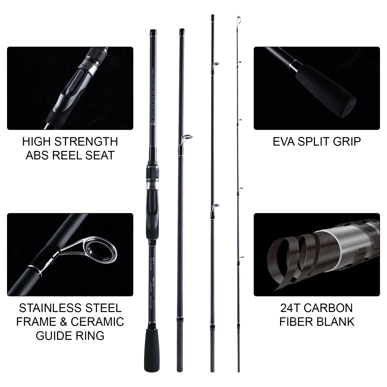 Goture Finality-caña de pescar de fibra de carbono, caña de pescar de fundición giratoria de 2,1 m, 2,4 m, 2,7 m, 24T, M/MH, 4 piezas