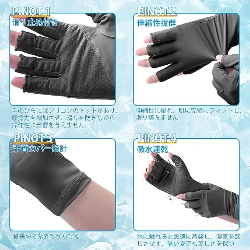 Goture-guantes de pesca con fugas de medio dedo, guantes de seda helada, protección UV, protección solar de verano, antideslizantes