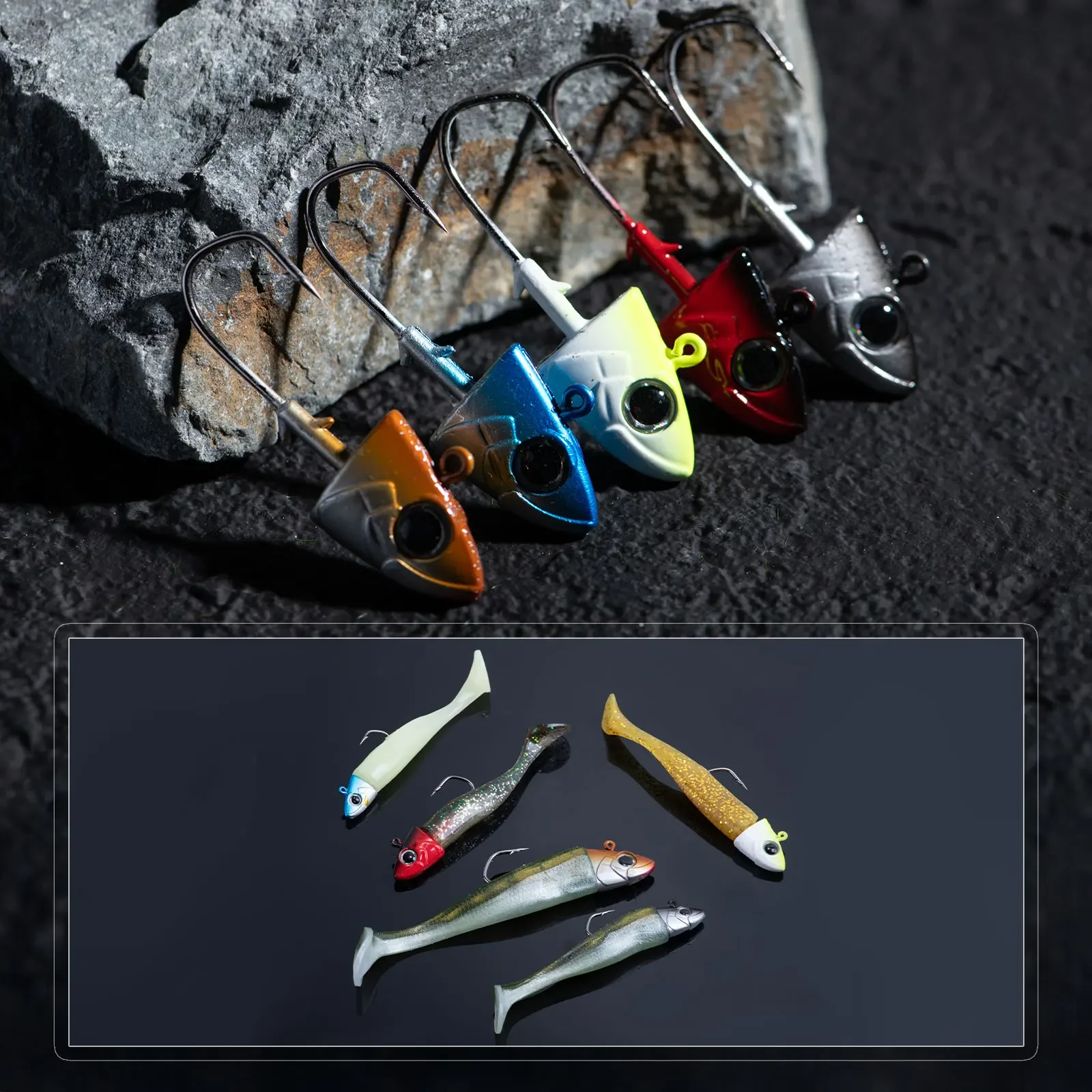 Goture-Juego de anzuelos con cabeza de anzuelo, 7-32g, 7g, 10g, 14g, 21g, 28g, 32g, ojos 3D, accesorios de cebo Artificial suave, aparejos de pesca con perca de agua salada