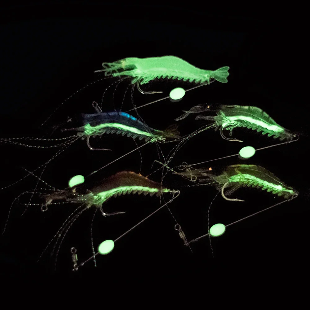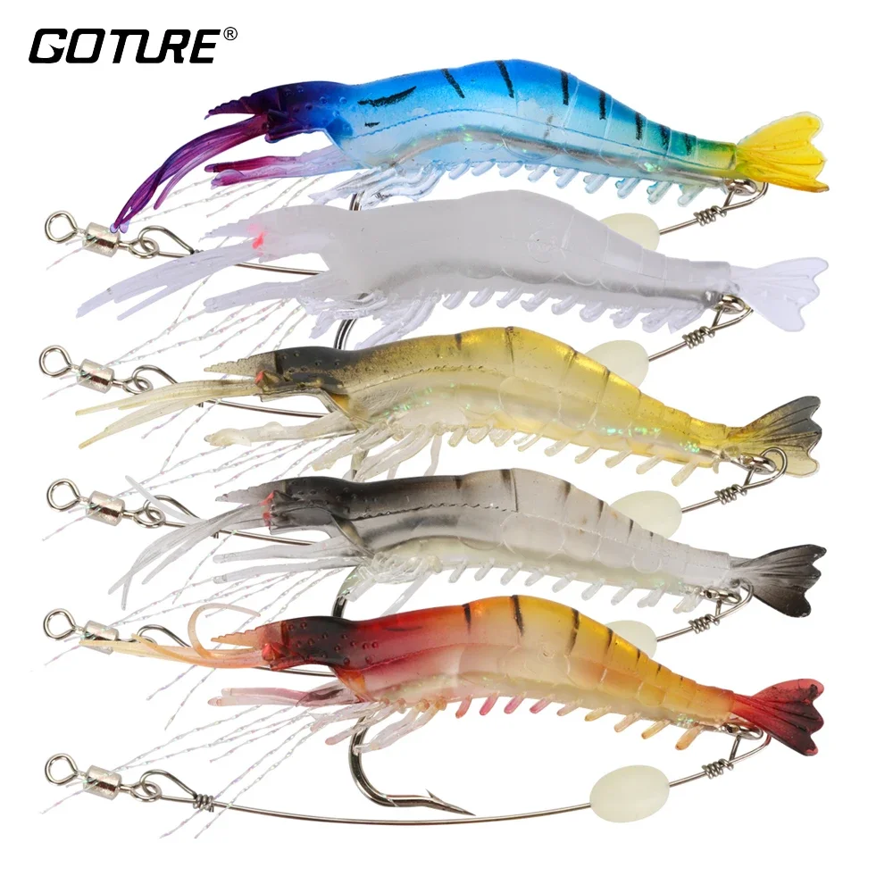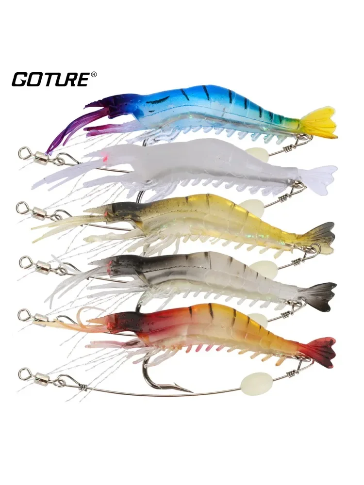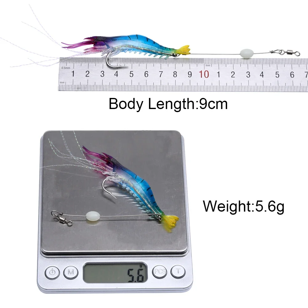 Goture-Juego de cebo suave de silicona para camarones luminosos, anzuelos giratorios de 9cm, aparejos Sabiki, señuelo de pesca, aparejos de Wobblers artificiales