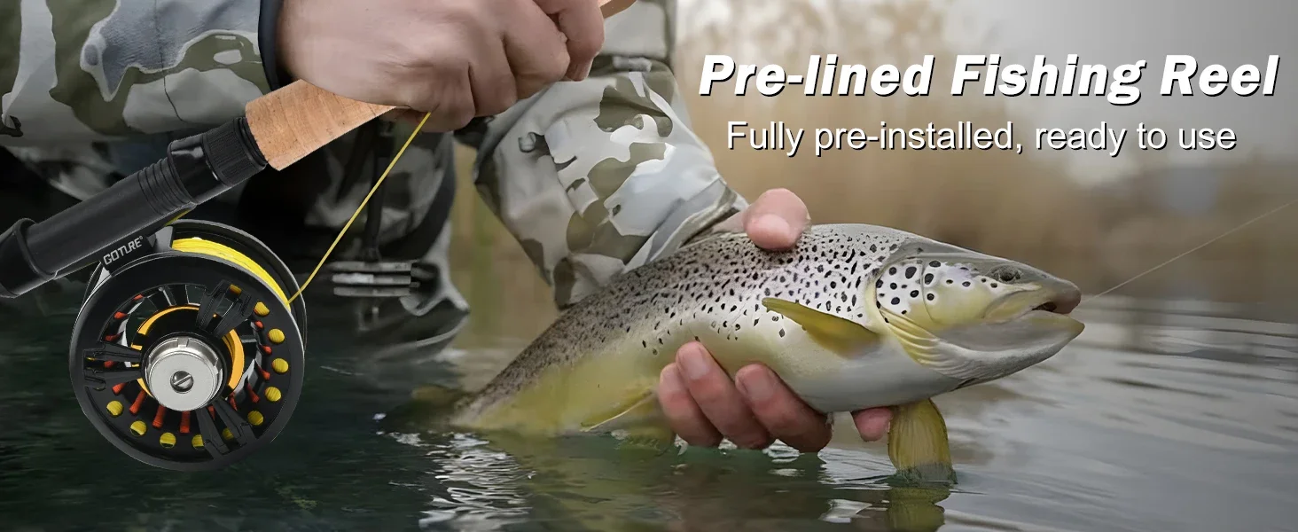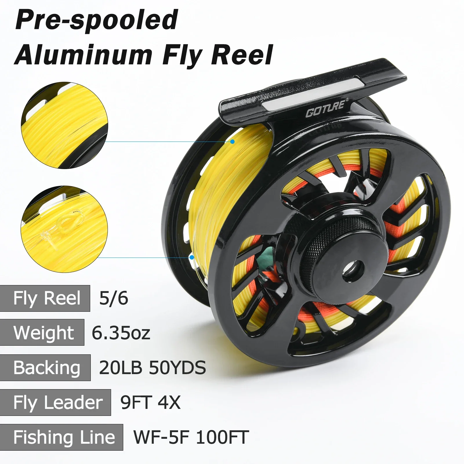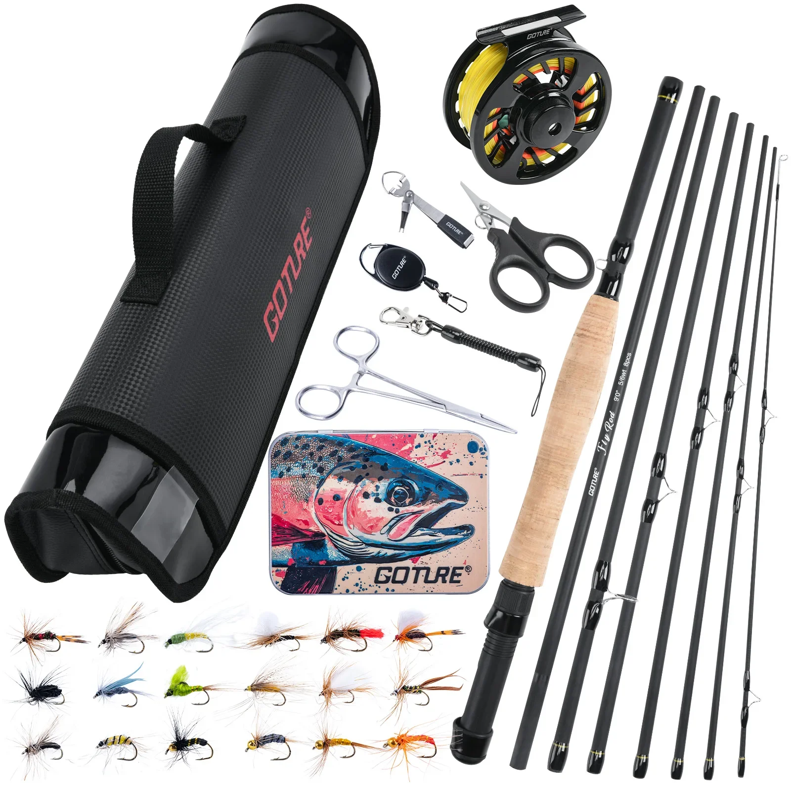 Goture-Juego combinado de caña y carrete de pesca con mosca, mango de corcho de carbono, caña de pescar de medio rápido, carrete, línea y accesorios de herramientas, 2,7 M