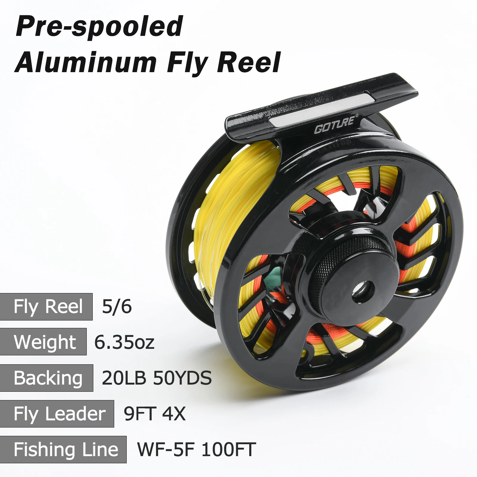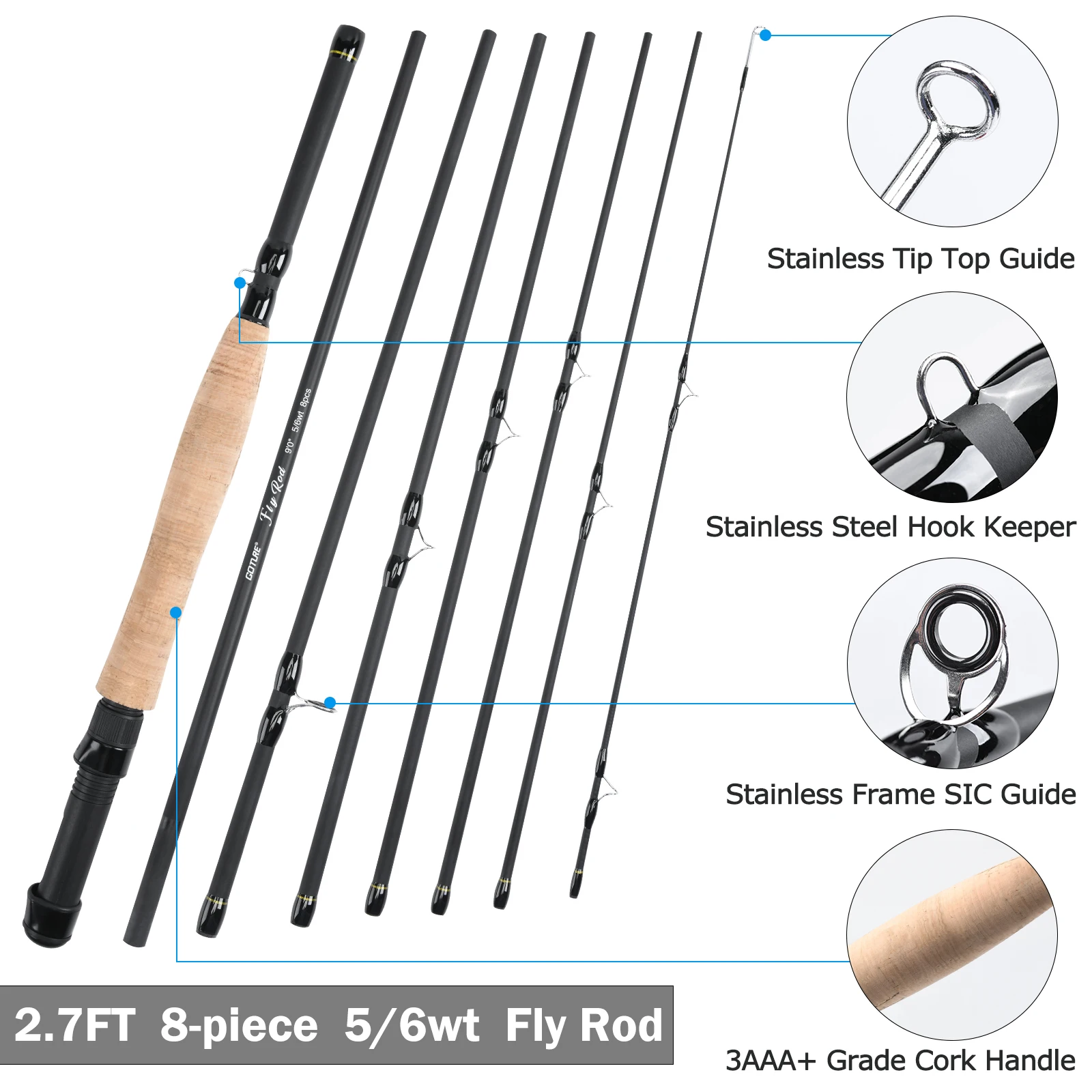 Goture Combo de caña de pescar con mosca de viaje de 8 secciones 5/6 # Kit de caña de pescar con línea de carrete señuelo conjunto completo aparejos de pesca para pesca con mosca