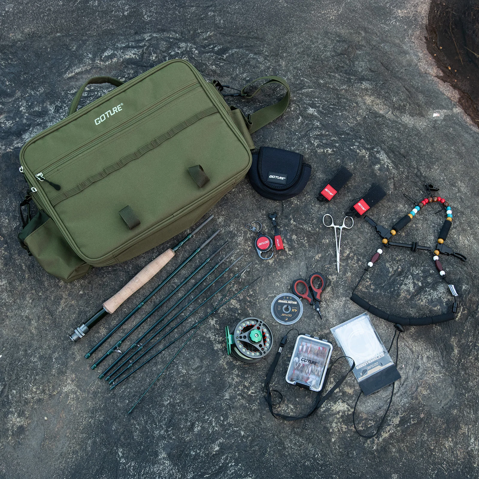 Goture-Juego completo de cañas de pescar con mosca, portátil, 8 secciones, 9 pies, carrete de caña con mosca, ganchos, accesorio combinado, Kit completo de caña de pescar con mosca