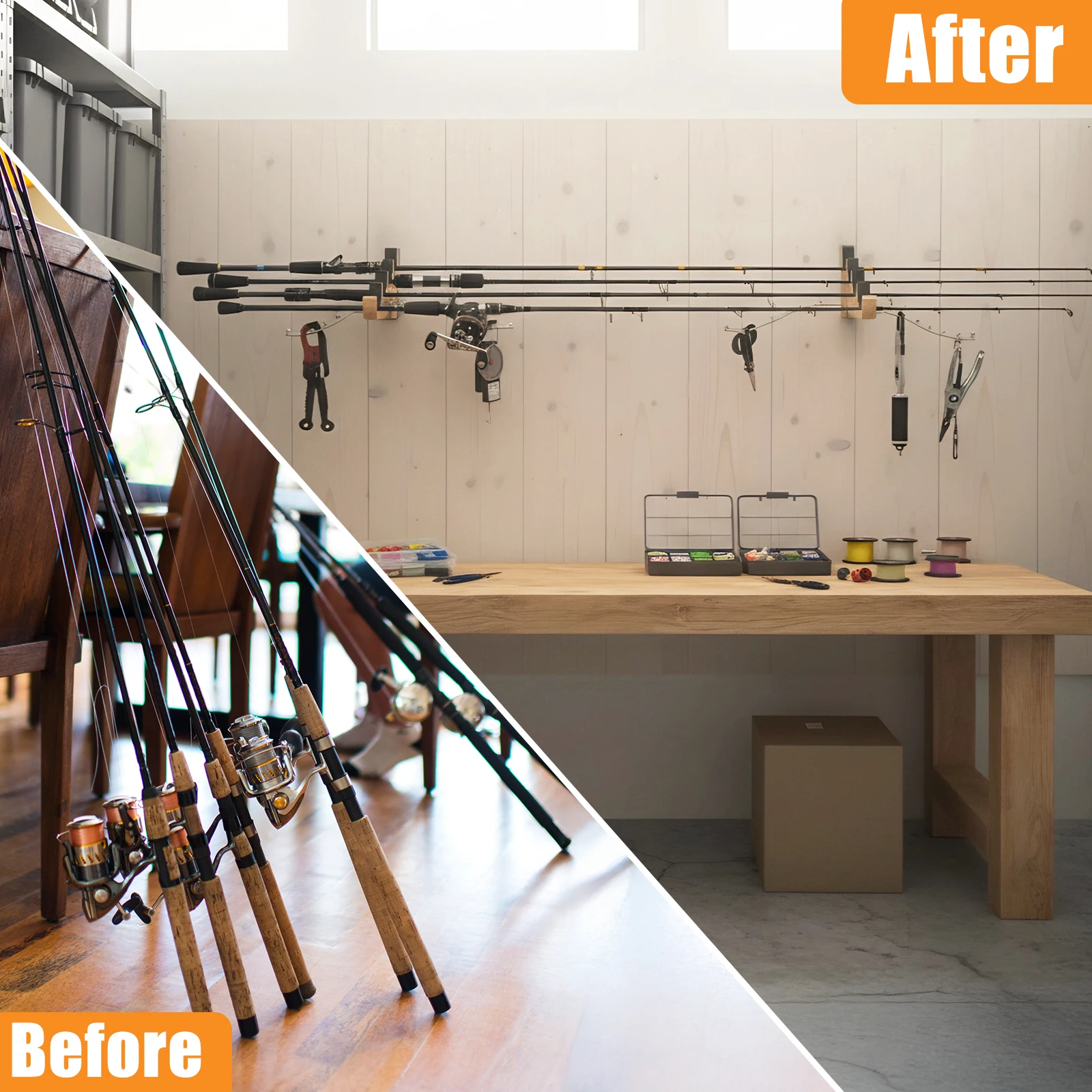 Goture 1/2pcs fishing rod Storage Display Rack set, Solid Wood Rack with S-Hook,Space-Saving Easy Mount,Rod Tackle Efficiently