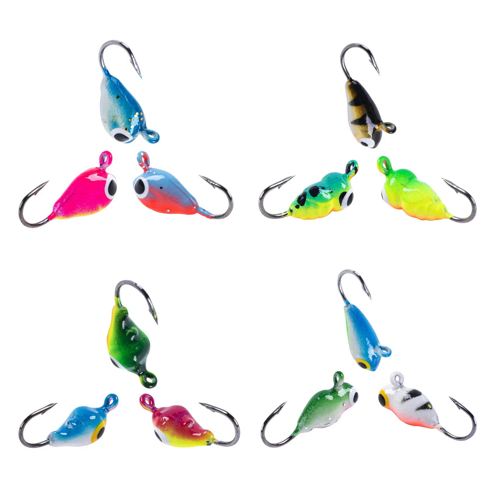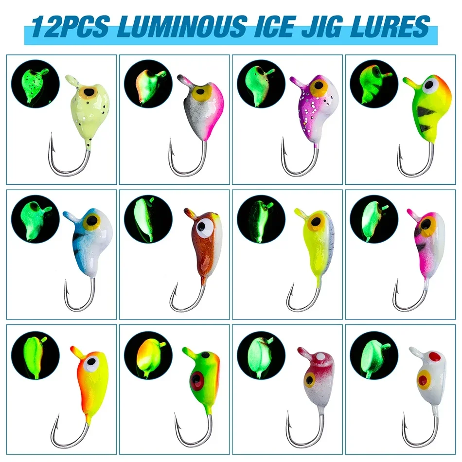 Todos son plantillas de pesca en hielo, adecuadas para panfish, como crappie, perca, BlueGill, se pueden usar con cola blanda de plástico o cebo de gusano vivo
