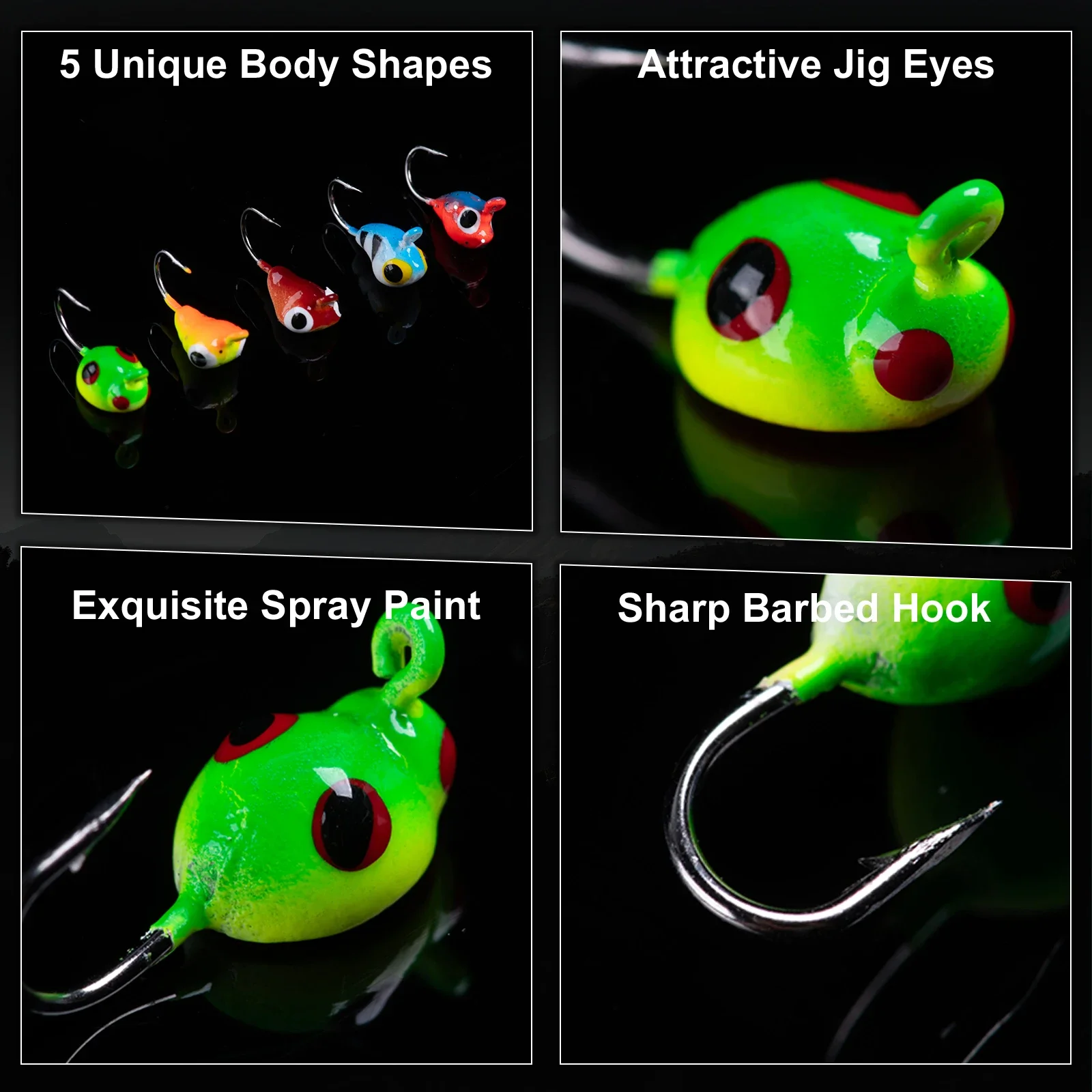 1. Disponible en 5 juegos con formas de cebo únicas y colores ricos