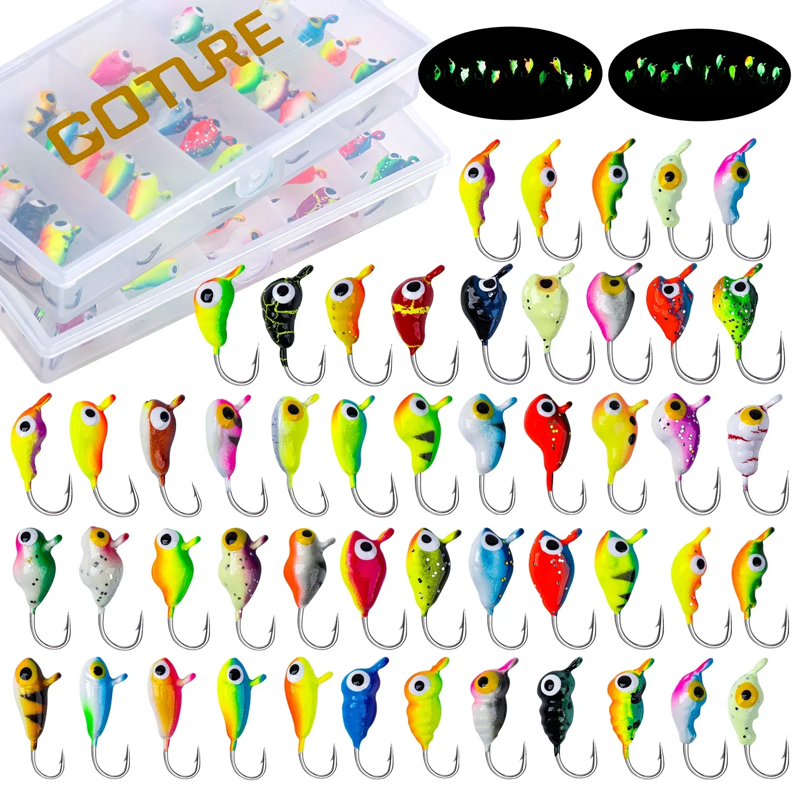 Todos son plantillas de pesca en hielo, adecuadas para panfish, como crappie, perca, BlueGill, se pueden usar con cola blanda de plástico o cebo de gusano vivo